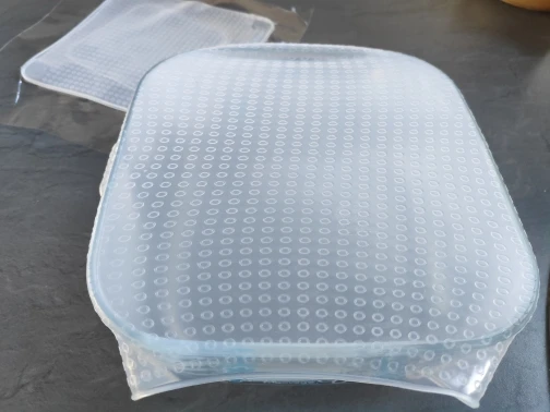 На самом деле я купил это по прихоти. Я бы не доверял, что он держит жидкость. Четыре угла, когда вы нажимаете их на чаши, они хорошо держатся. Будут иметь большие размеры, так как я могу использовать их только на небольших тарелках/чашках и т. Д. Я бы не рекомендовал растягивать его. Просто чаша большего размера хорошо, но в противном случае она не покрывает гораздо больше чаши.