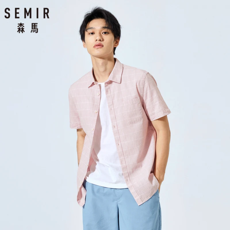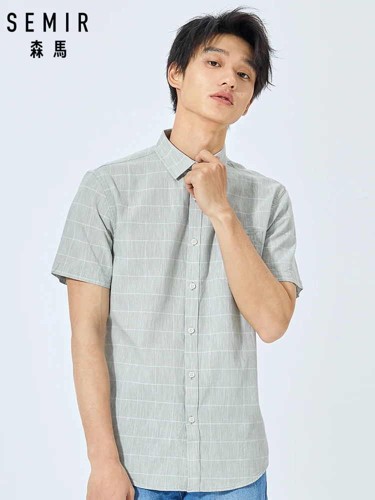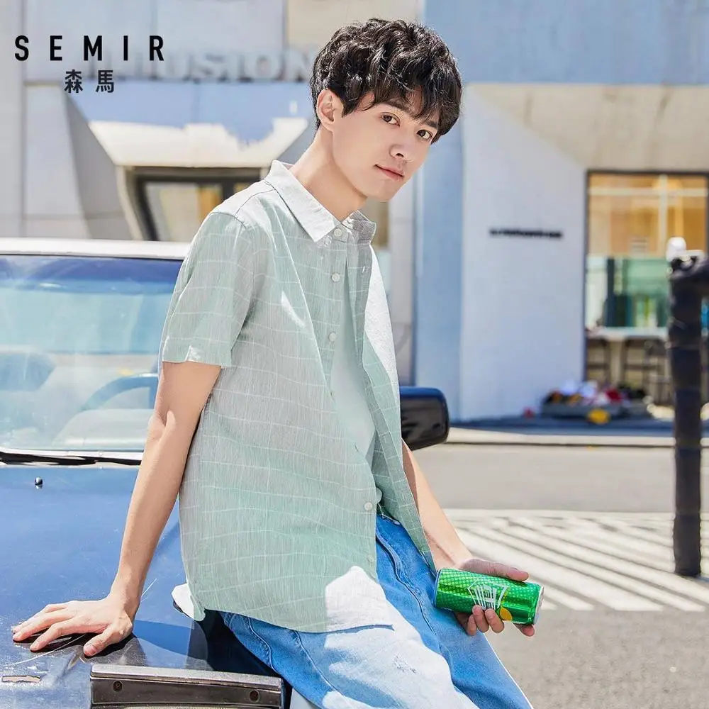 Рубашка SEMIR мужская с короткими рукавами, Повседневная блуза из хлопка в Корейском стиле, однотонная, для подростков, лето
