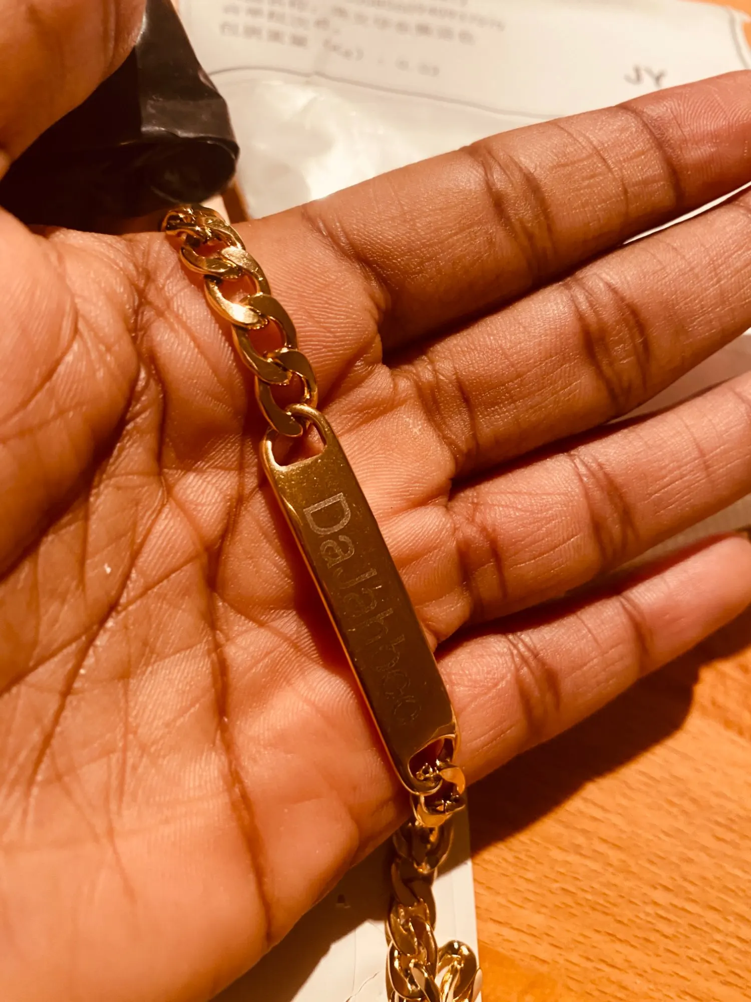 Страна: GB Metal Color: gold color Length: engrave 1 side Доставка: Cainiao Super Economy Global 07.12.2020
