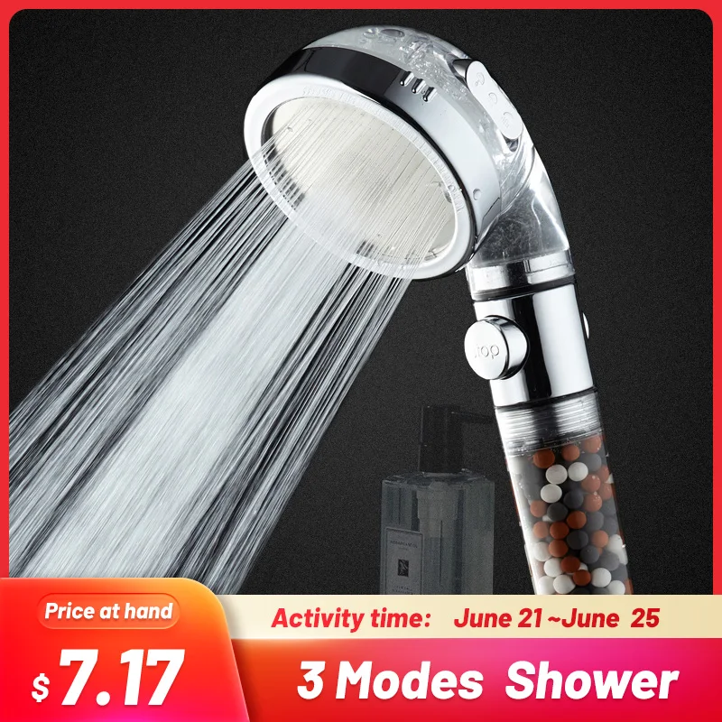 ZhangJi высокое давление 3 режима Регулируемая душевая головка водосберегающая спа турмалиновый фильтр шары кнопка переключения Распылительная насадка