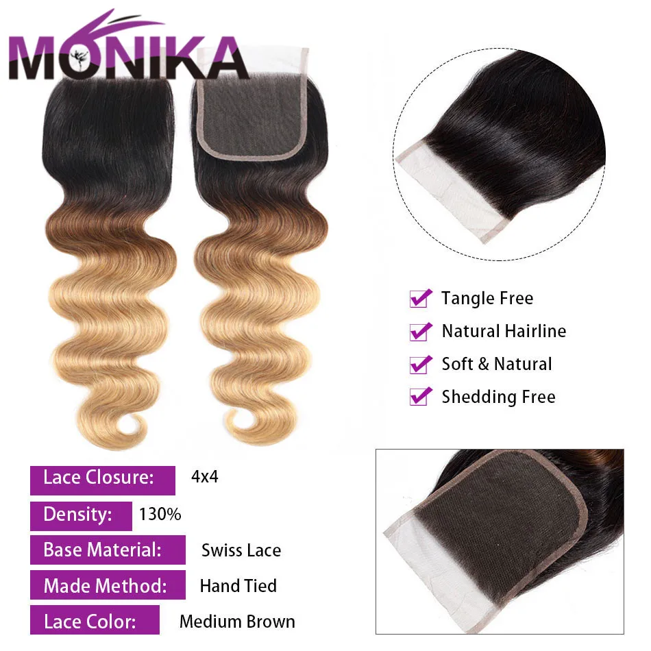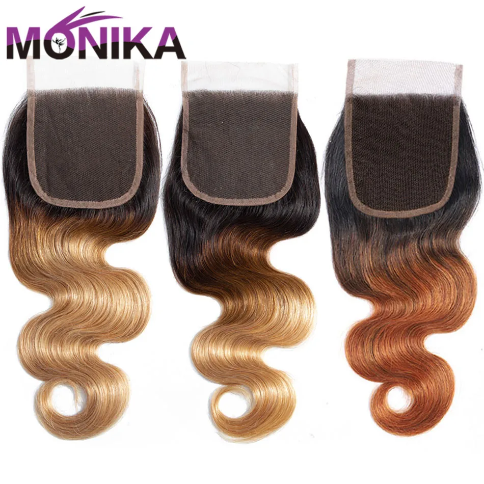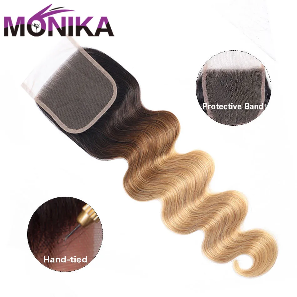 Monika 4x4 кружевные человеческие волосы бразильские волнистые волосы T1B #4 #27 #30 Омбре блонд цвет темные корни зажимы не реми волосы