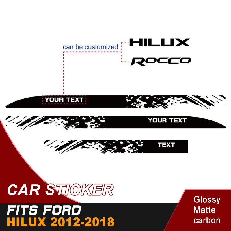 Если вы не можете найти наклейку для вашей модели автомобиля в нашем магазине, пожалуйста, оставьте нам сообщениеЛоготип вашего автомобиля/модель/годы. (Например: TOYOTA /HILUX REVO/2015), Так что мы можем предоставить подходящий размер наклейки для вашего автомобиля.