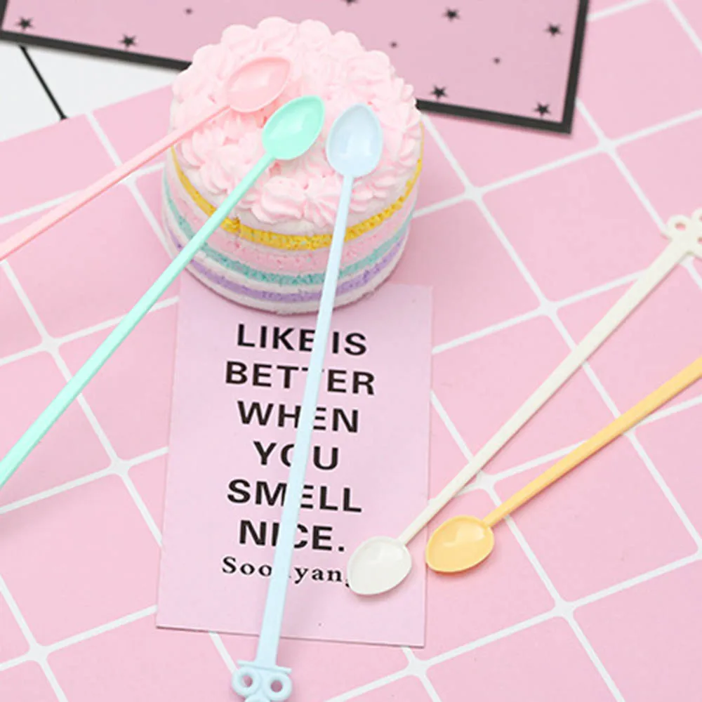 Портативный, цвета леденцов Кофе Чай ложка с длинной ручкой однораз...