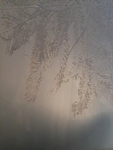 доставка месяц. приехало три полотна. размер оговаривала заранее свой, 180×220. размер получился в итоге чуть-чуть другой 183×219, но для меня не страшно. в описании говорится что при обрезке на полотна есть зазор в пару сантиметров и это надо учитывать при поклейке и изначально обрезать, в моем случае этого не было, все встык изначально. что касается цвета, то голубой более насыщенный к низу, есть зелёный оттенок листьев, я бы сказала, что серого мало в принципе. о внешнем виде, я бы рекомендовала продавцу указывать, что именно за вариант материала на фотографии, потому что результат явно зависит от этого. лично мне нужен был объём, поэтому я довольна, хотя конечно результат не совсем такой, как на фото продавца
