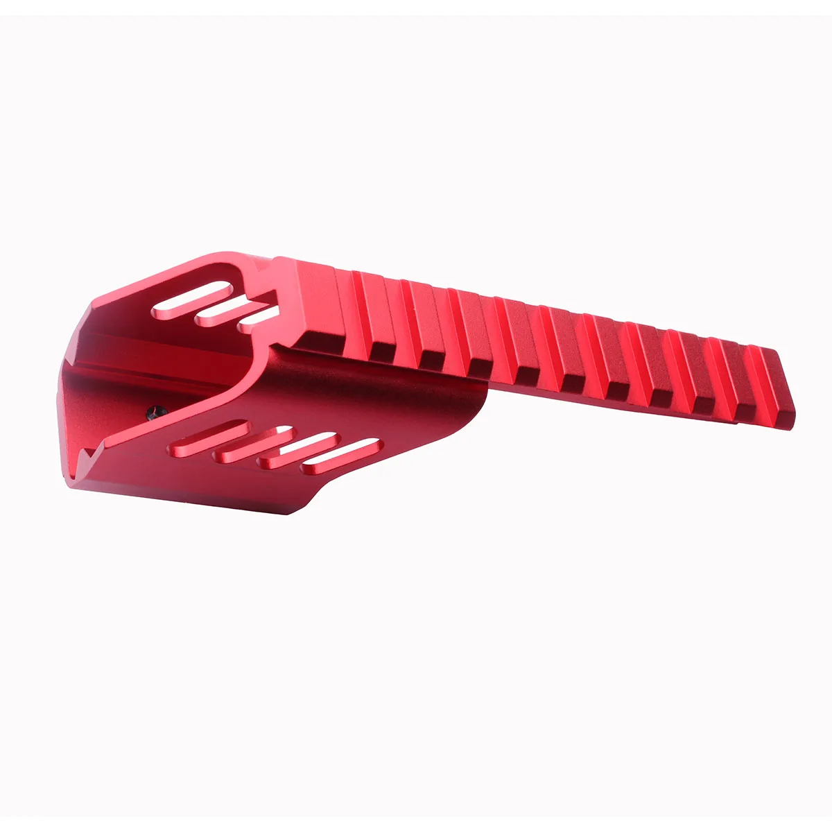 Обработанный АлюминийВысококачественная анодированная отделкаПодходит для нижнего аксессуара на серии G тренировочный A (irsoft) P (istrol)20 мм P (icatinny) Top R (ail)Материал: алюминийВес нетто: около 69Цвет: матовый черный, синий, красный