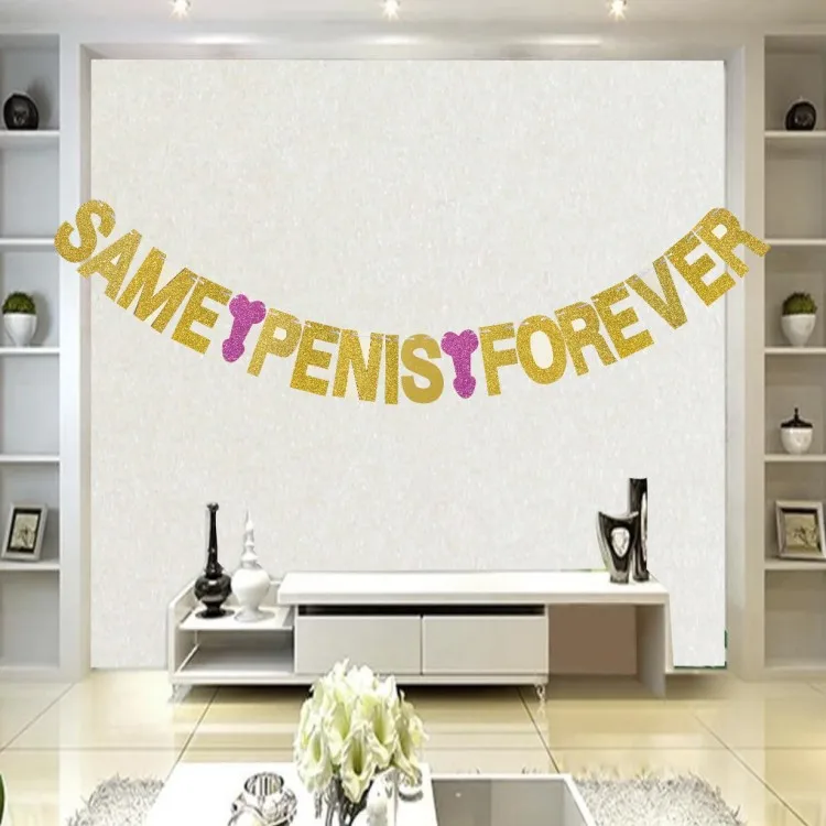 ● Наслаждайтесь временем! Отпразднуйте свой особенный день с нашим красивым «таким же пенисом навсегда». Блестящий и идеально подходит для ваших свадебных фотографий дня душа. Идеальный реквизит для вашей девичника вечерние.● Размер: баннеры измеряют 14 см соответственно и поставляются с большим количеством дополнительных ниток, чтобы легко повесить. Это идеальные вечерние украшения для свадебного душа.● Качество: буквы напечатаны на высококачественном глянцевом картоне и поставляются с большим количеством дополнительной ленты для легкой подвешивания. Высокое качество печатных букв и акцентов привлечет внимание вашего народа.