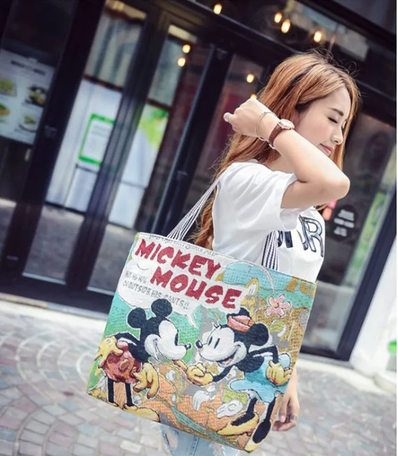 Лидер продаж, модная Милая мультяшная плюшевая сумка Disney с Микки Маусом, женские сумки на одно плечо, сумка для магазина, складная сумка