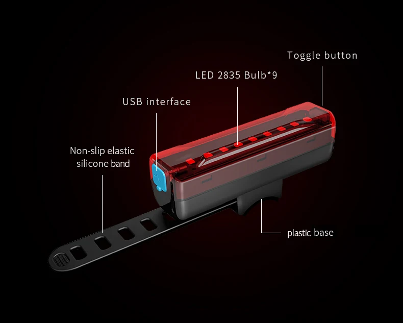 Фсветильник светильник велосипедный, 2600 мА ч, водонепроницаемый, 9 светодиодный, зарядка от USB