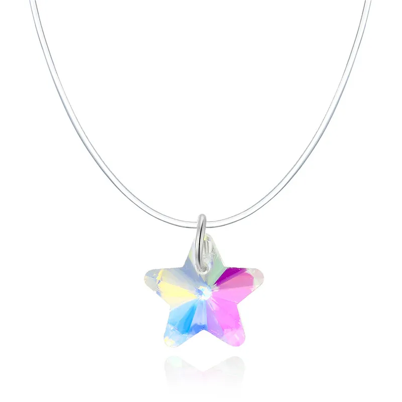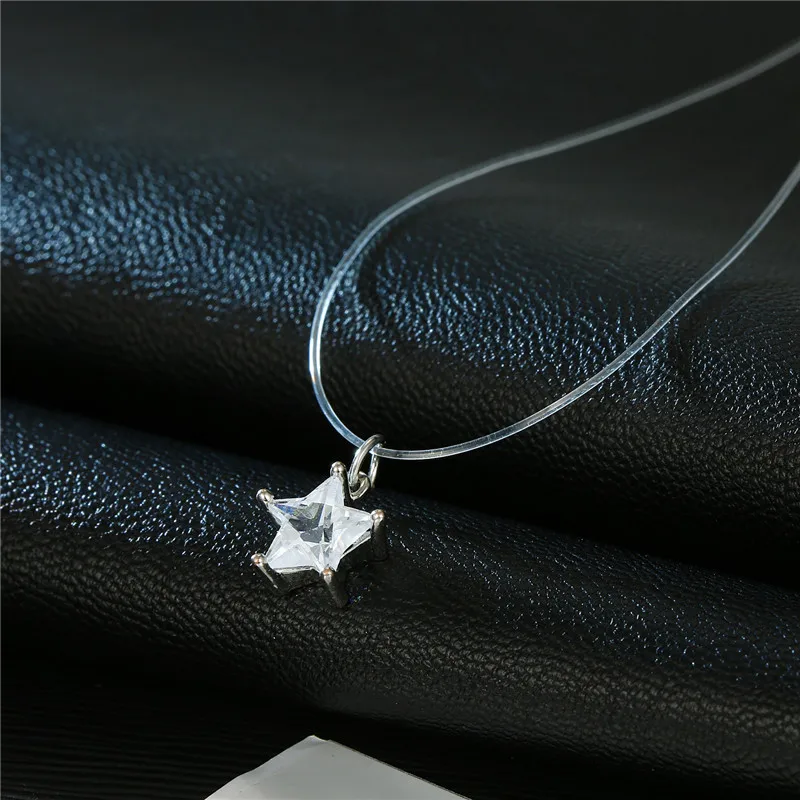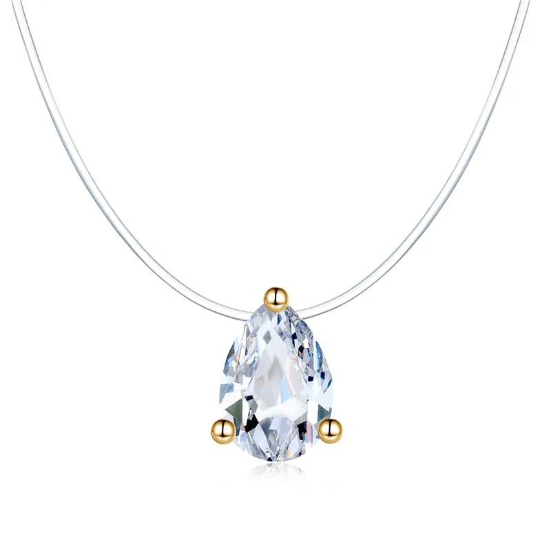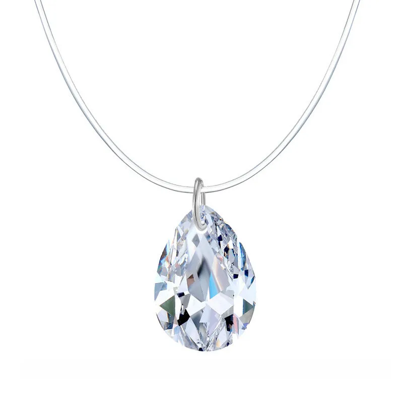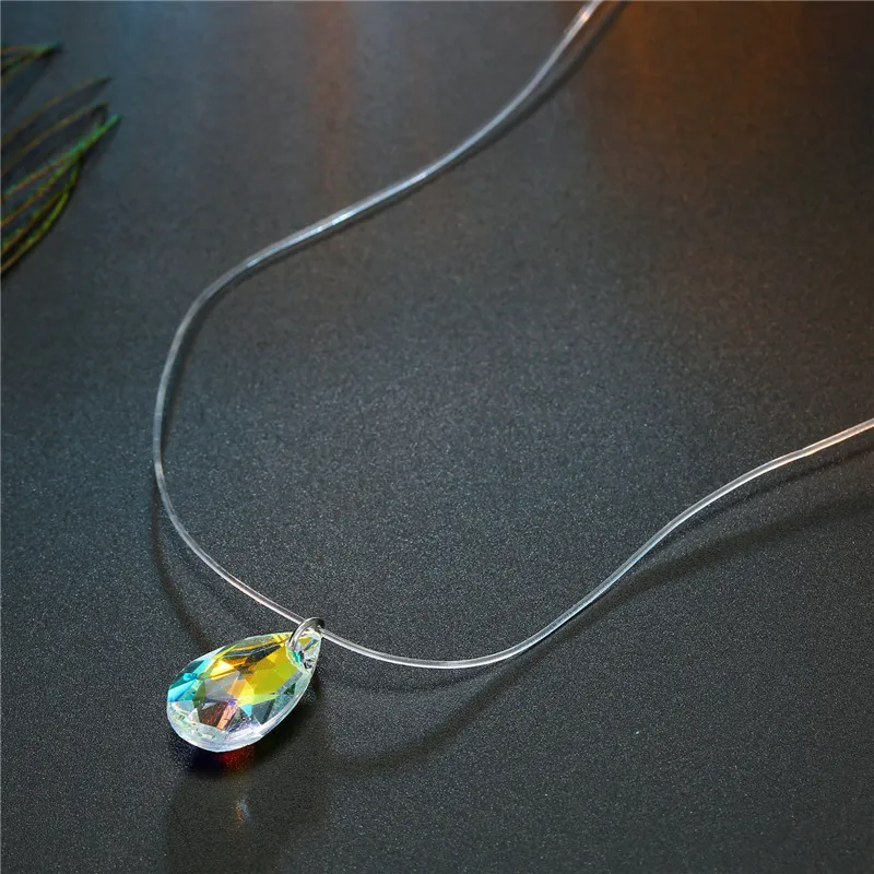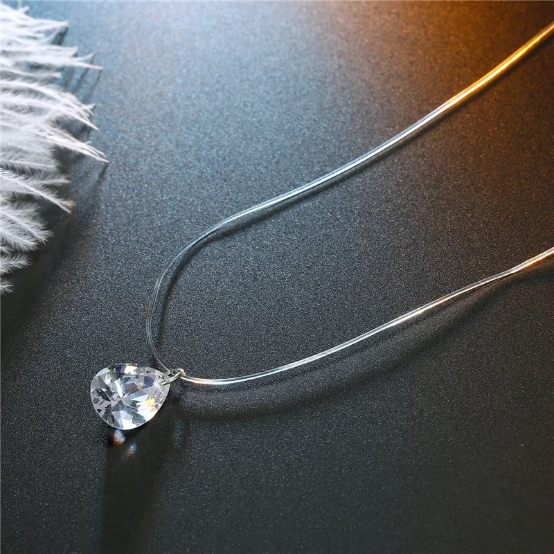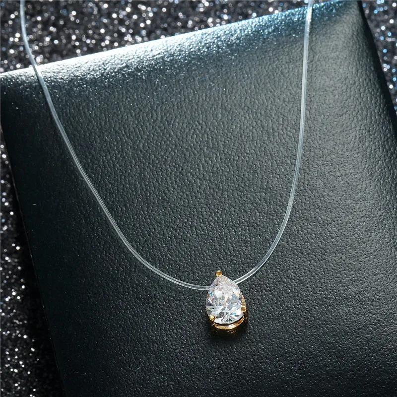 Модное ожерелье из прозрачной лески в форме капли воды, серебряная невидимая цепочка, подвески, ожерелье-чокер Со стразы, колье