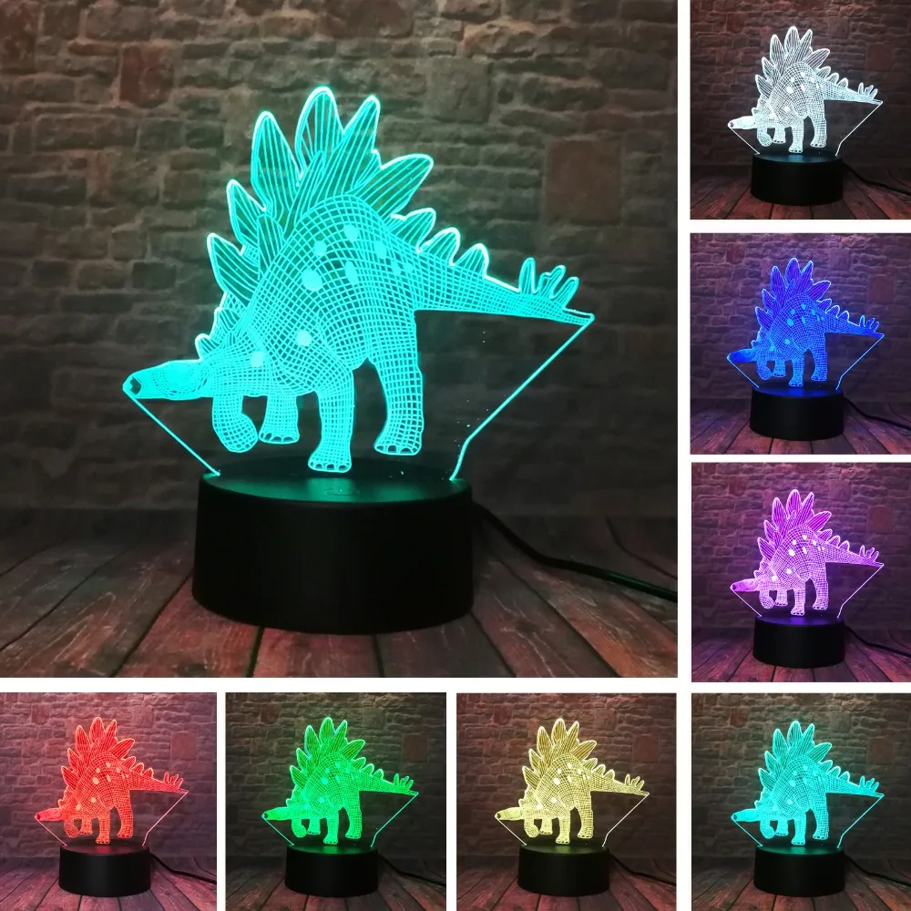 Креативный стегозавр, Забавный 3D Визуальный светодиодный ночник в форме динозавра, светодиодная RGB-лампа, цветной декор для детской комнаты и детские игрушки на Рождество
