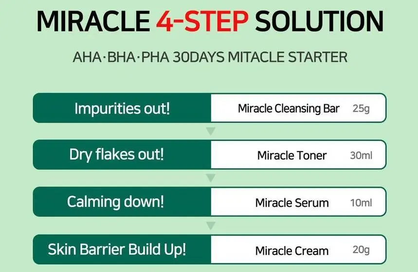 Пусковой набор SOME BY MI AHA BHA peng30 дней Miracle, Очищающий брусок + чудо-Тонер + чудо-сыворотка + чудо-крем, корейская косметика