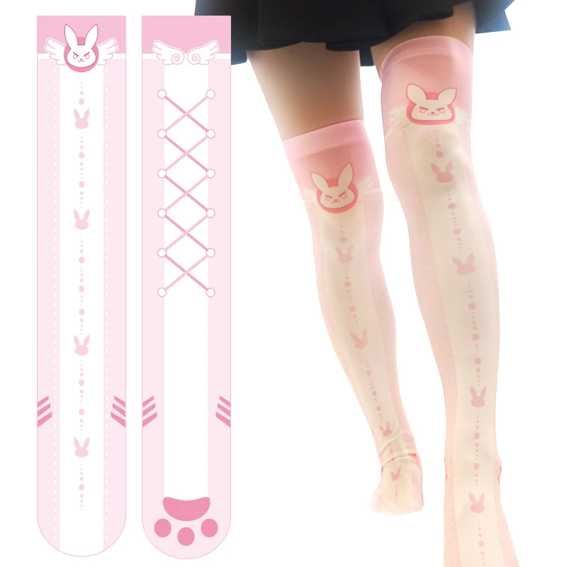 Аниме игра Ow d.va Косплей о наколенниках для женщин девочек Dva Лолита длинные носки для девочек в стиле "Лолита" Розовая модель для вечевечерние НКИ на Хэллоуин
