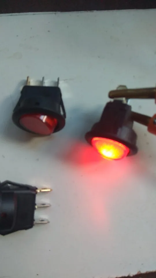 Шла посылка долго - 2,5 месяца. Упаковка простая - пакет с пупырками. Качество выключателей хорошее. Заказывал на 220 в. Подсветка - неоновая лампа, подключается к центральному выводу и золотистому. Проверил - работает. Вцелом доволен.