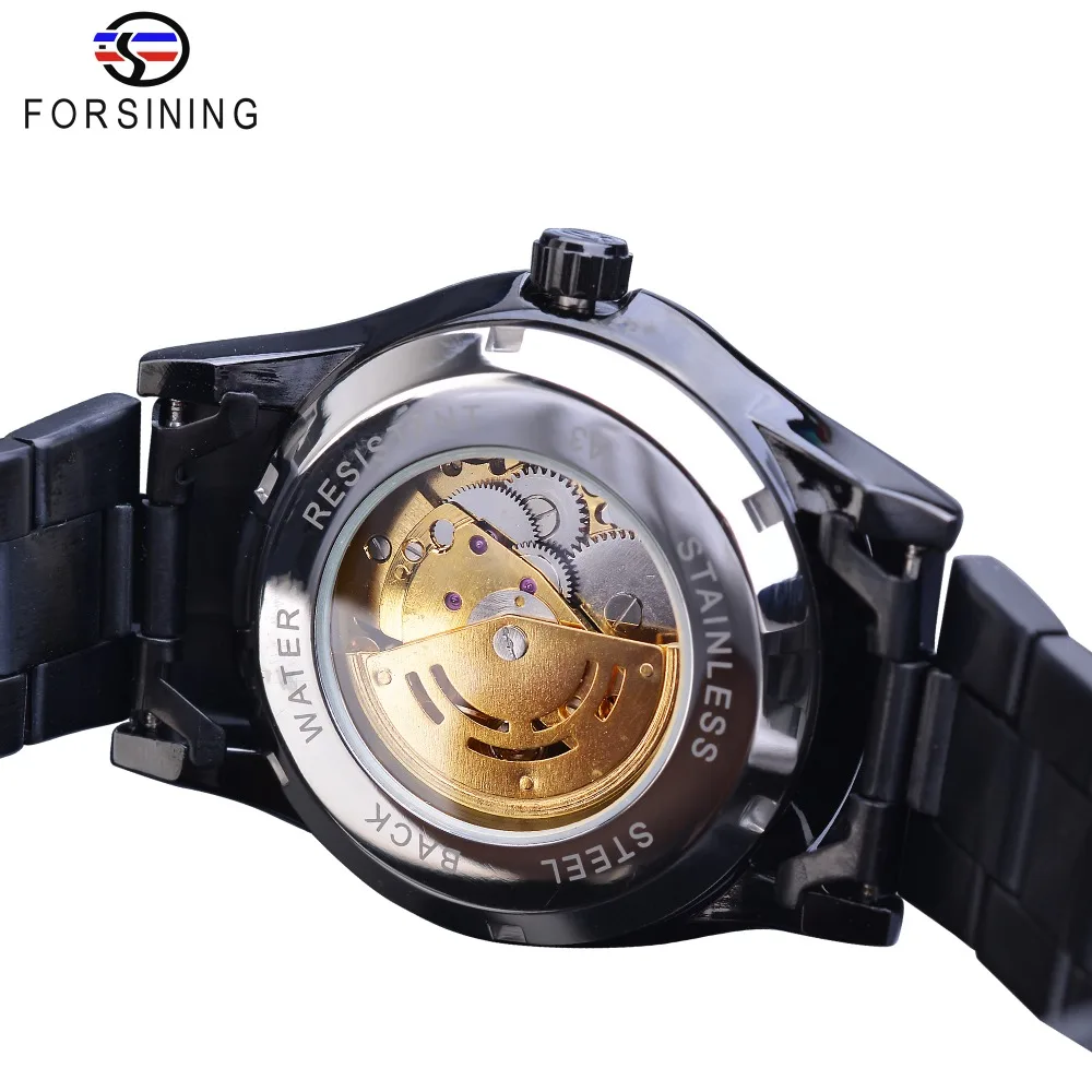 Часы наручные Forsining Мужские автоматические, Золотые механические брендовые Роскошные Брендовые Часы-скелетоны с 3D резным драконом и стальным браслетом