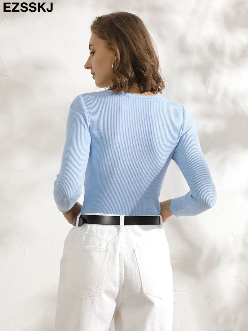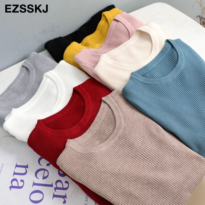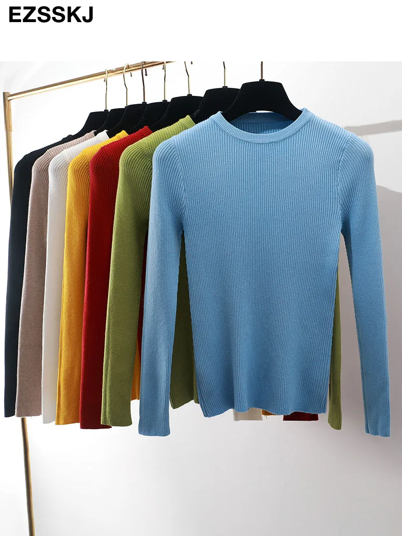 Зимняя одежда, вязаные женские свитера, пуловеры, базовый женский джемпер на весну и осень, облегающий женский свитер, дешевый пуловер с длинным рукавом