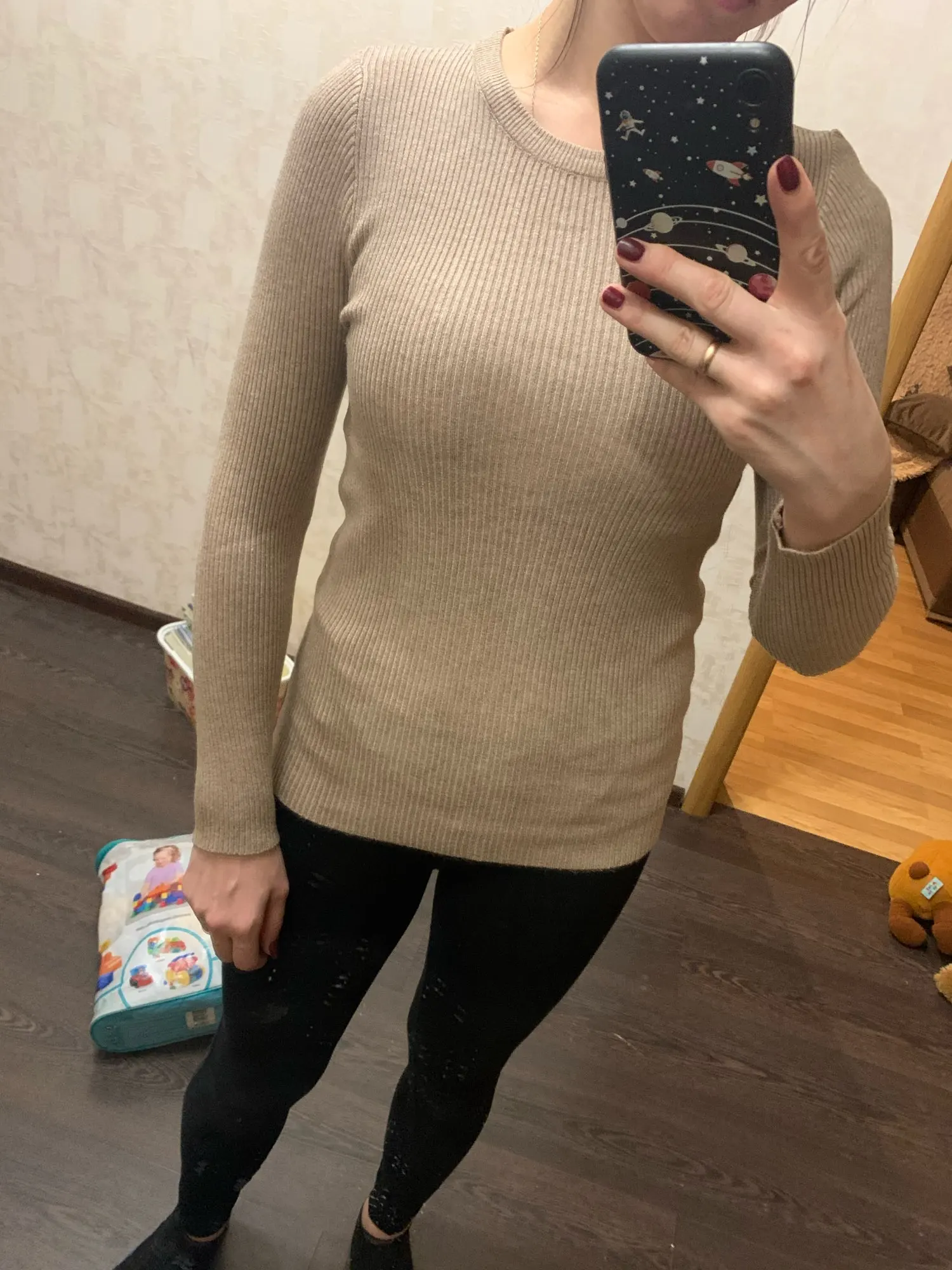 свитер нравится, цвет светлый беж, мягкий и нежный, хорошо и мягко тянется, держит форму. швы ровные, нитки немного торчат, но некритично. просвечивает!