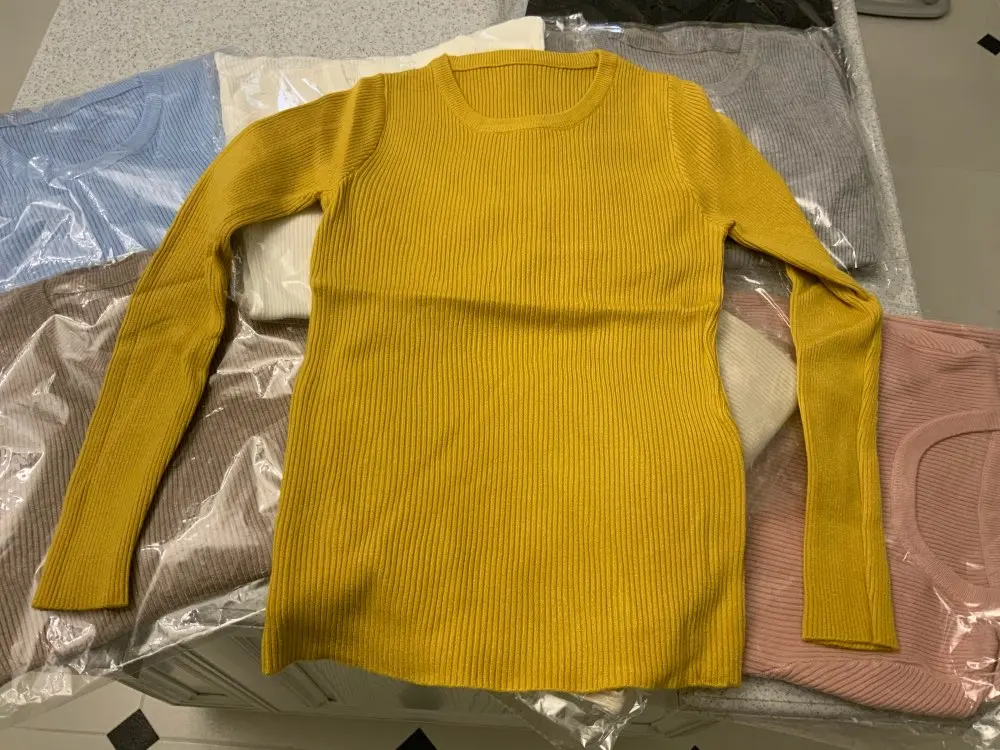 Посылка шла 18 дней, упакованно в стандартный пакет. Кофточка мягкая, цвет ближе к горчичному, чем жёлтый. Это вторая такая покупка, первую брала в белом цвете. Спасибо продавцу, буду покупать ещё.