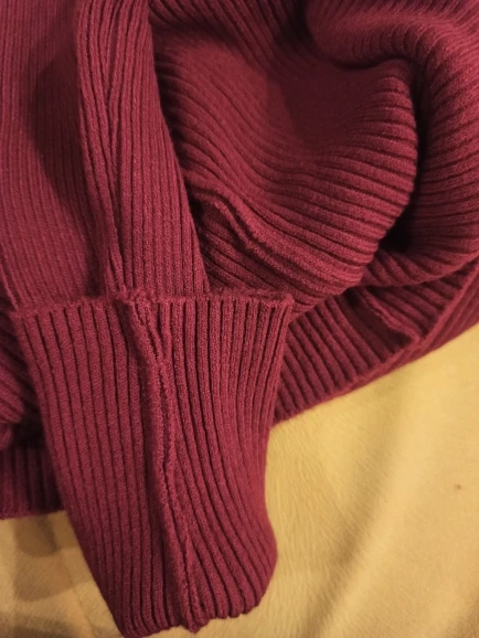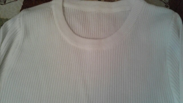К сожалению, свитер пришёл с браком на вороте. Не прошит по шву, имеется отверстие. Попробую зашить, не знаю, получится ли хорошо. Так же в некоторых местах швы кривые. Очень жаль, т.к. ранее заказывала такую же кофточку у этого продавца, только цвет хаки. Тогда было всё идеально и хотелось заказать много цветов! Но, после этого брака, что-то осеклась. Радует лишь то, что по спору моментально вернули деньги, даже суток не прошло. За это ставлю 5 звёзд. Параметры этой кофты: плечи 28,5 см, ширина 33 см, длина от плеча 56 см, рукав от плеча 59 см. Рекомендую продавцу проверять товар перед отправкой.