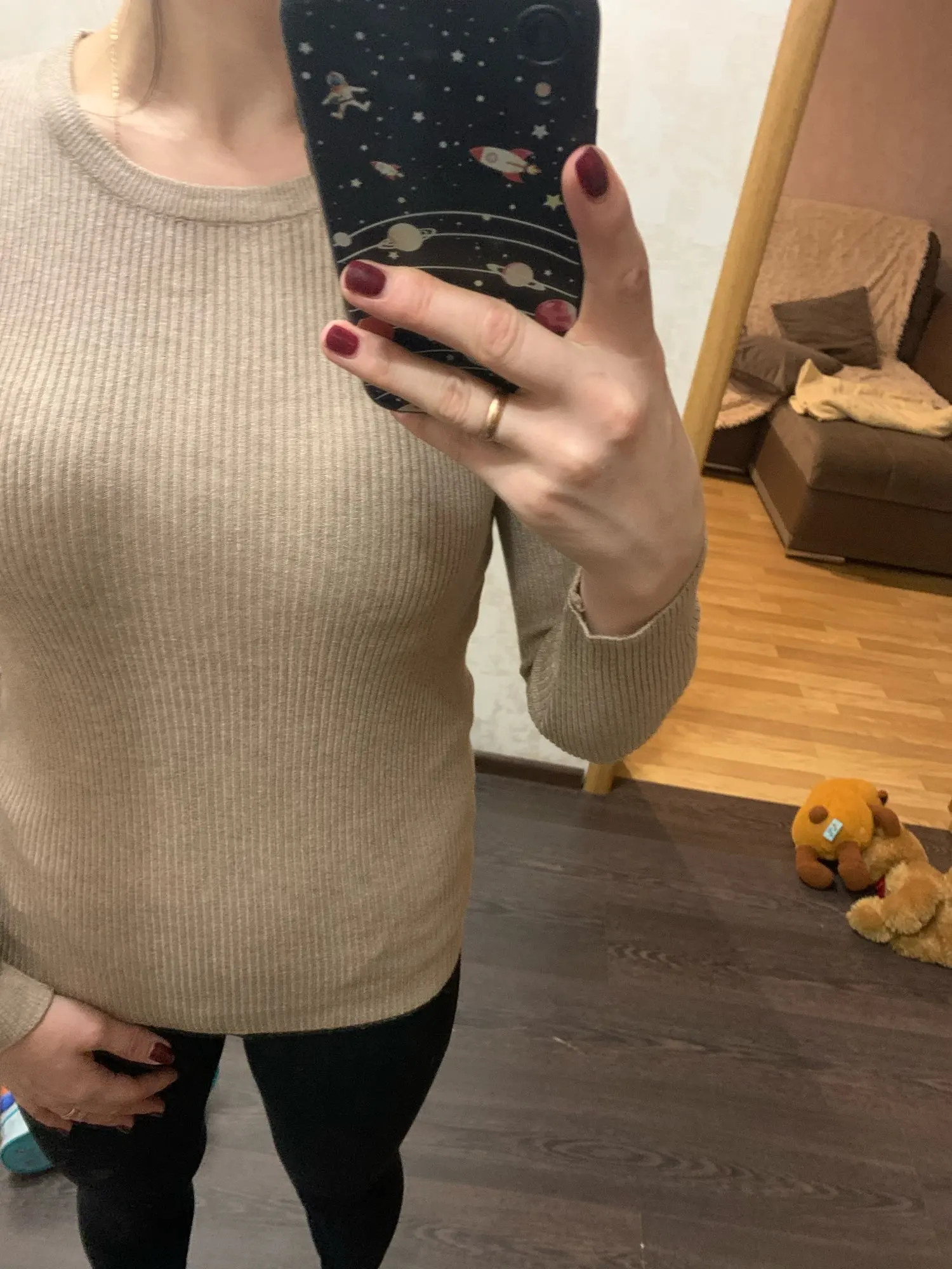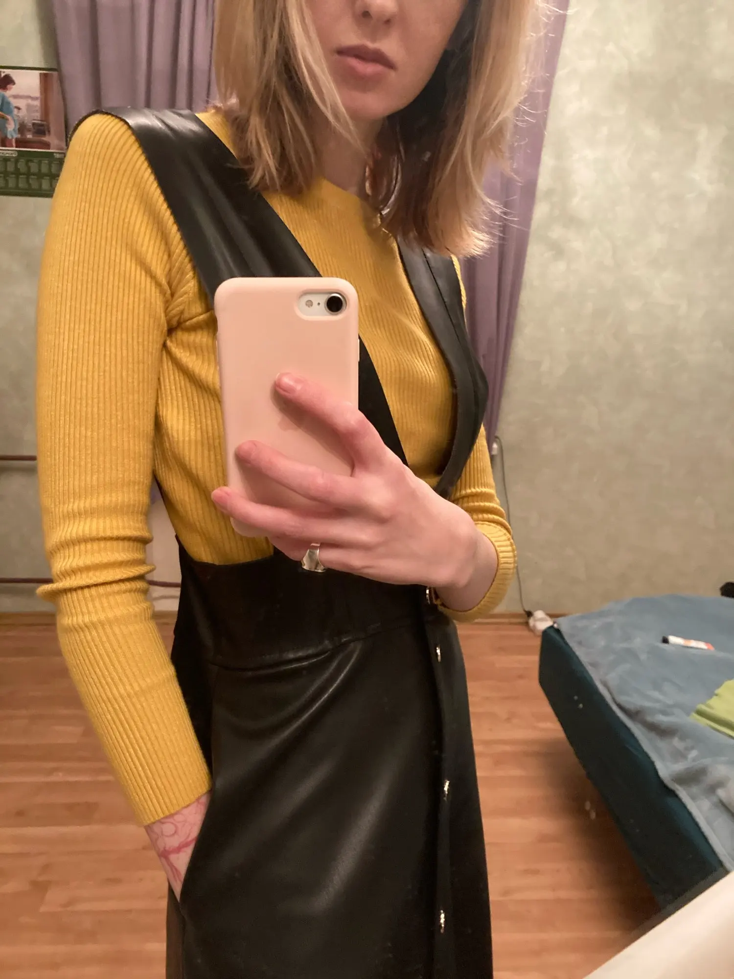 Очень классный цвет горчичного цвета, мягкий и приятный материал. Однако Необычные отверстия на одной из рукавов. В любом случае, планируйте заказать также другой цвет;)