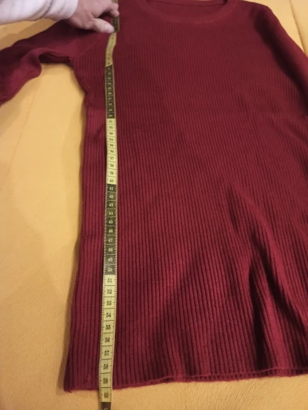 Очень мягкий и приятный джемпер, мне рукава практически 3/4, но всегда ношу закатанными поэтому оставила, буду носить) длина рукава изделия 50,5 см, длина туловища изделия 57 см, удобно заправить в джинсы, не будет выскакивать)
