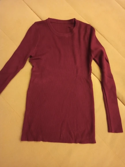 Качество понравилось. Цена смешная! На размер 46 (ОГ 92) подошло, немного кортковат рукав (рост 170см), но носить всё равно буду с удовольствием. У нас такие за 1000р. На фото получилась красного цвета, но в действительности ближе к вишнёвому.