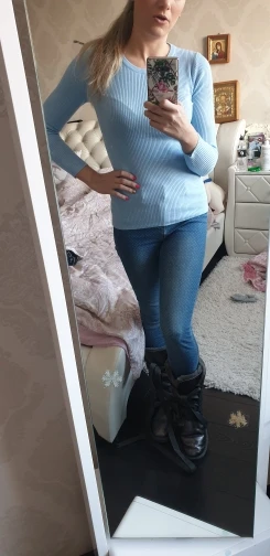 Хороший джемпер, очень мягкий, хорошо тянется. Мои параметры ОГ- 90, ОТ - 65. Очень долго ехал по России. 8 декабря пропал на таможне в Шарапово и только 23 декабря поехал дальше. В пути был 45 дней, притом что заказывала 11.11. В целом довольна. Брала за 500 р.
