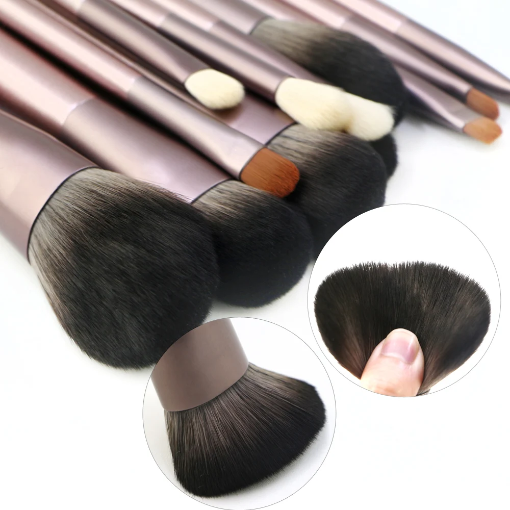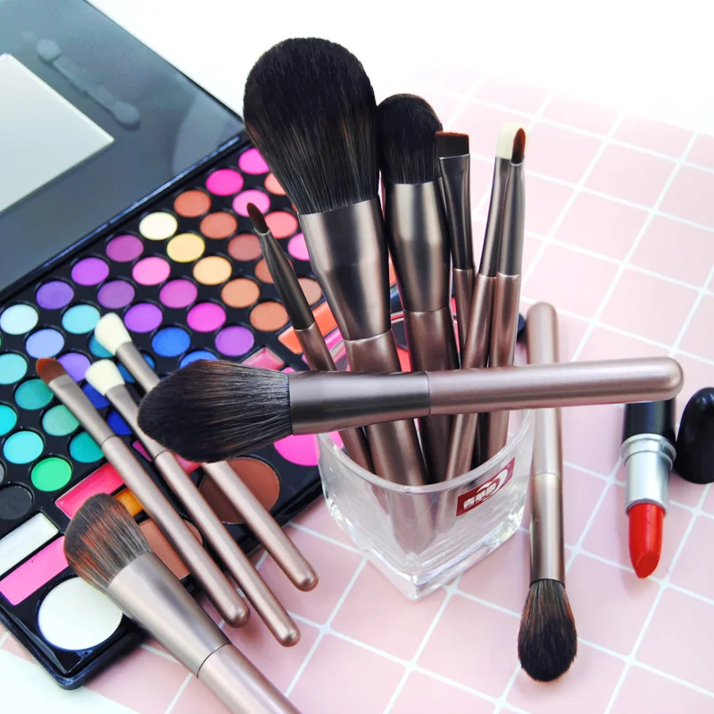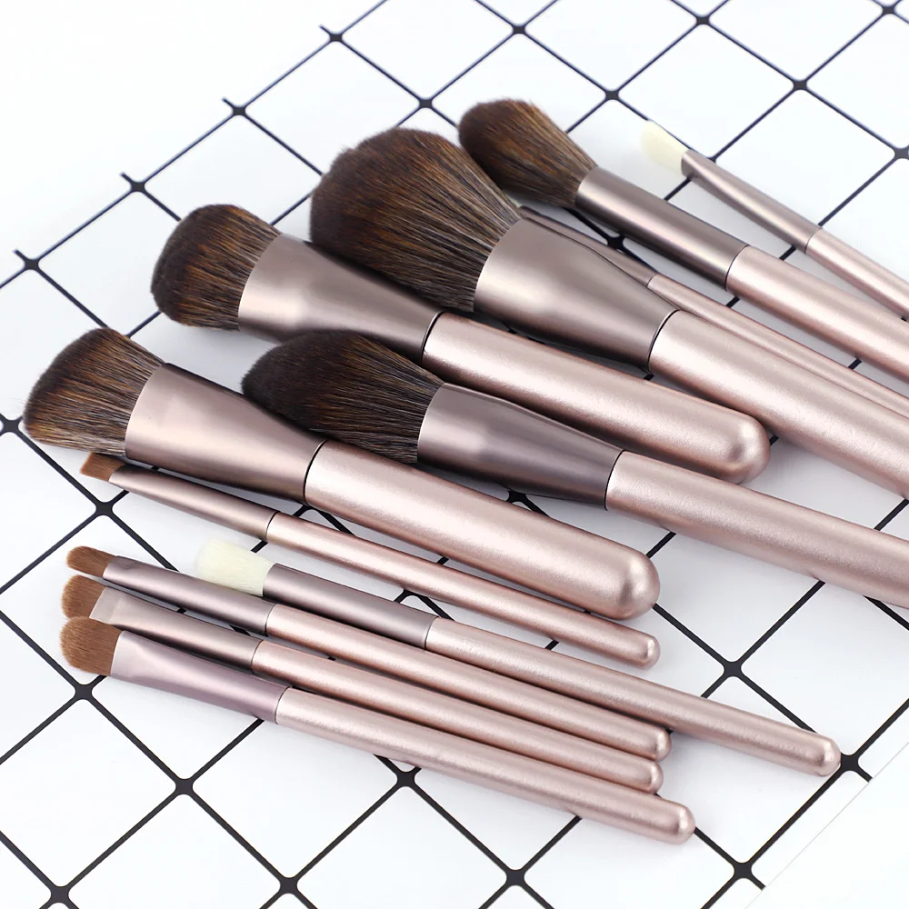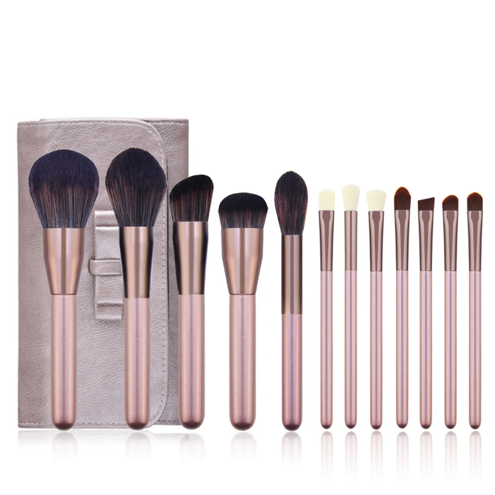 Набор кистей для макияжа Kaizm, 12 шт., цвет металлик, розовый, мягкая, для нанесения румян, пудры, Базовая кисть для теней