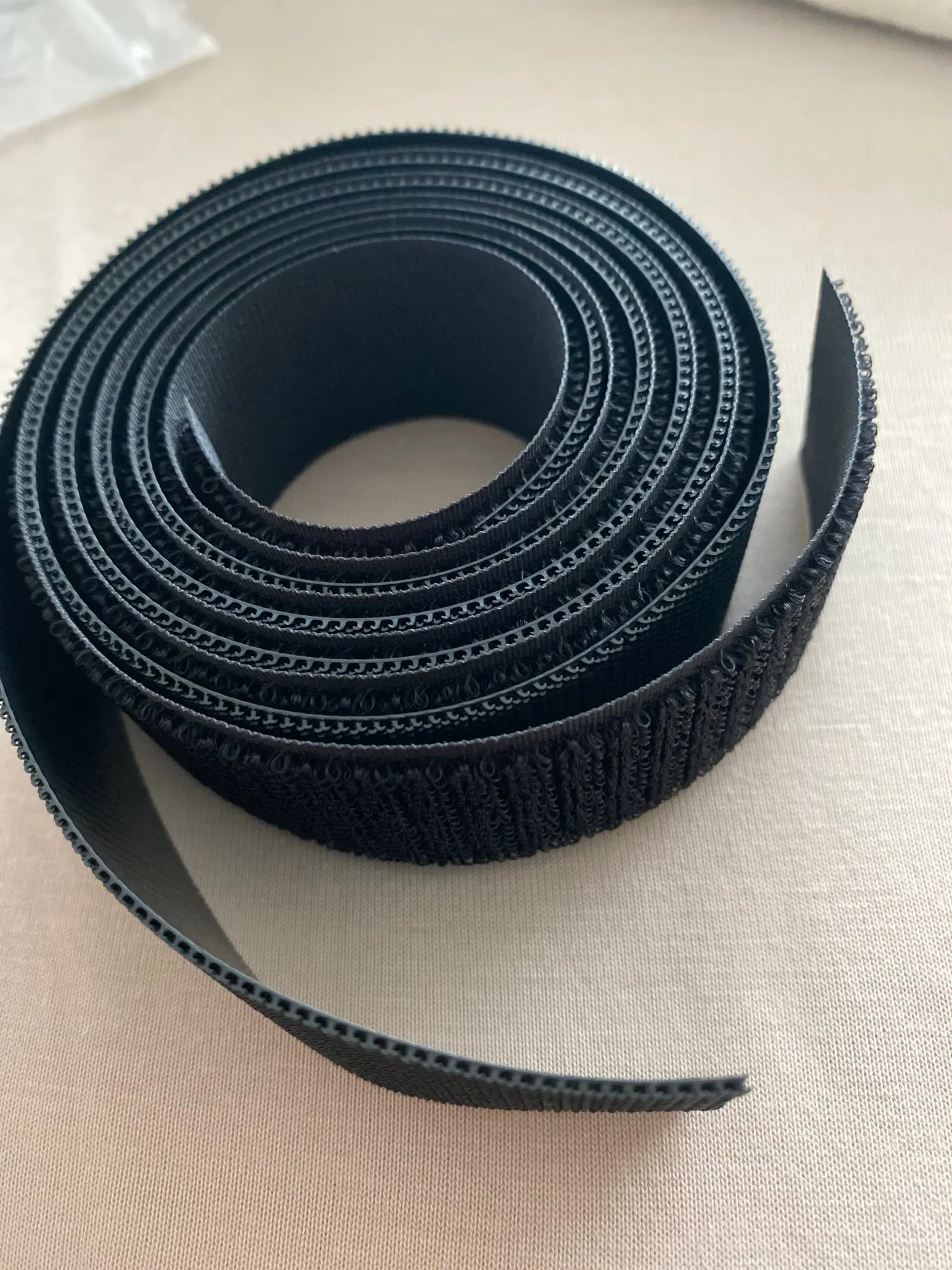 Как и было обещано. Современная черная липучка. У него нет клея. Вам нужно его сшить. Качество отличное. Доставка занимает очень много времени.