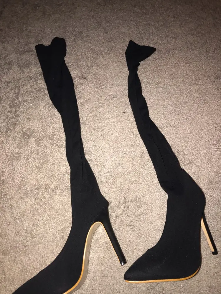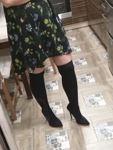 Быстрая отслеживаемая доставка. Описанию соответствует. Приезжают без коробки, но вроде всё целое. Лучше сядут на стройные ноги. С моим весом 65 кг уже не так красиво. Попошло впритык на размер 38, длина стопы 24,7 см.
