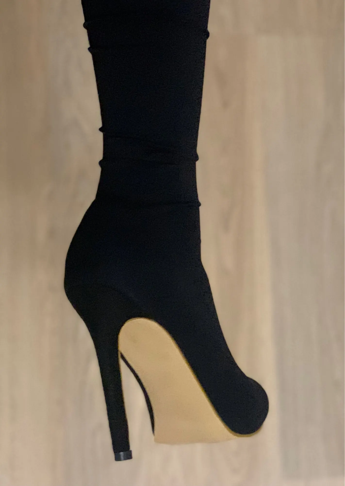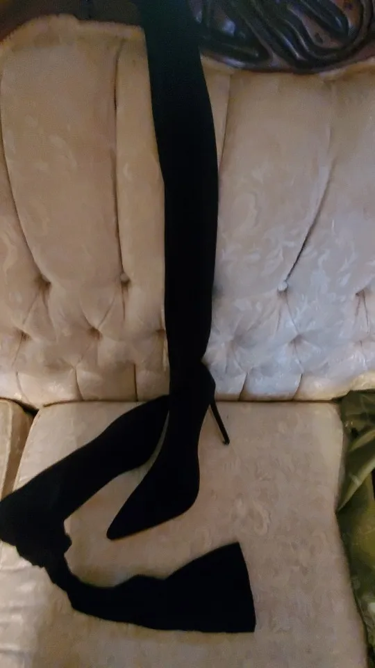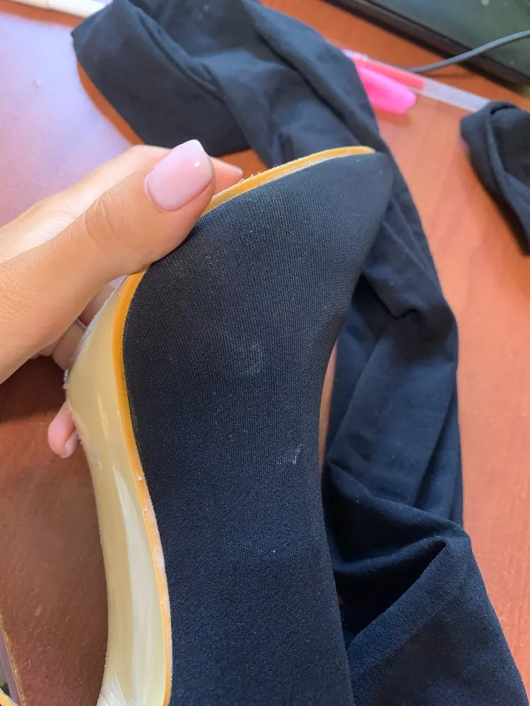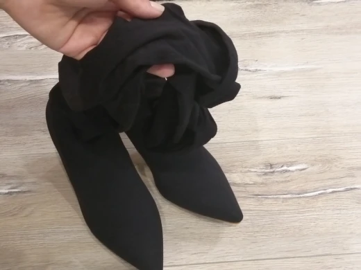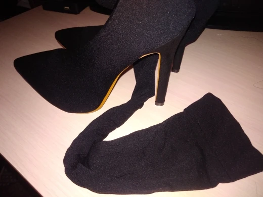 Это не ботинки. Это чулки, прикрепленные к обуви. Прозрачный Немного, даже если вы сильно растягиваете их. Как тупидные чулки. Кроме того, у них есть Резина сверху, как у чулок.