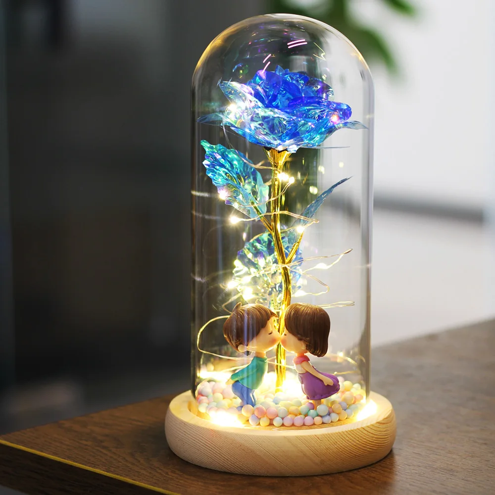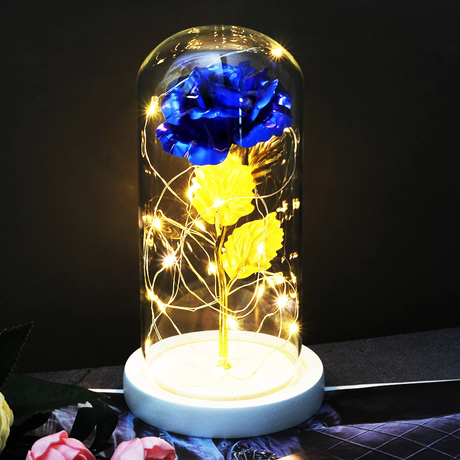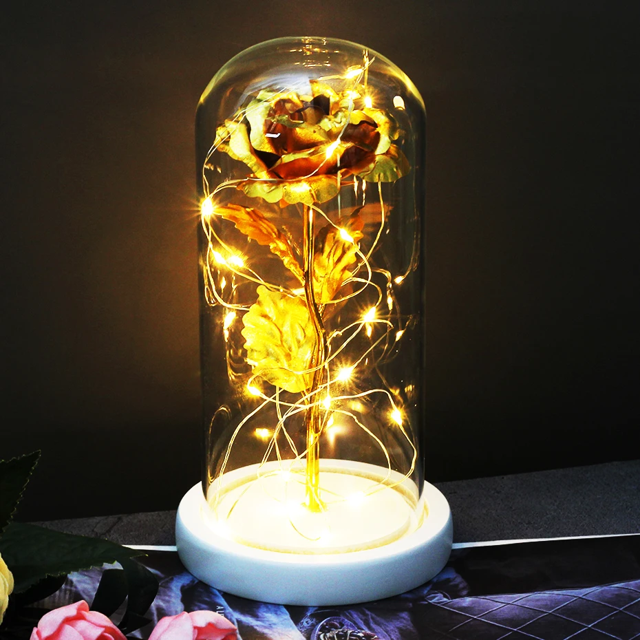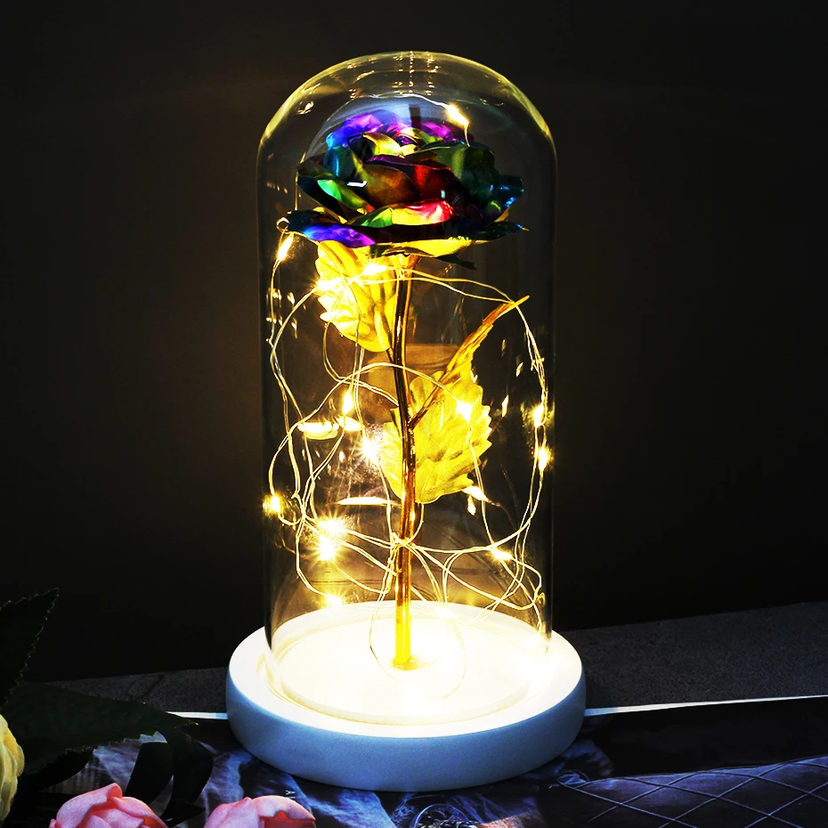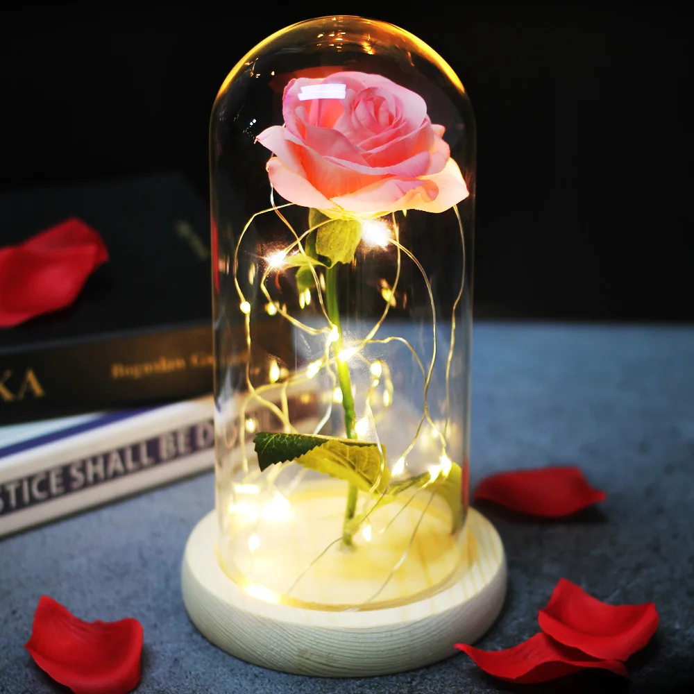 Красавица и чудовище, красная роза, искусственные цветы в стеклянном куполе, светодиодный светильник для свадебного декора, Рождество, День Святого Валентина, День матери, подарок