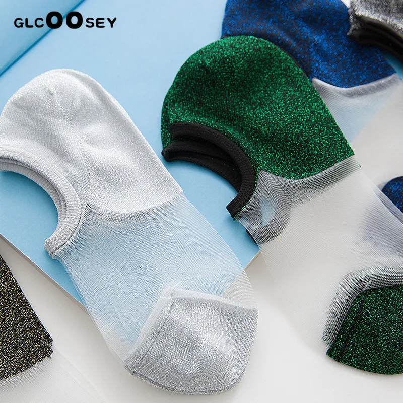 Женские блестящие носки с вышивкой в виде сердца; Модные серебристые и золотые шелковые яркие блестящие носки; Calcetines Mujer
