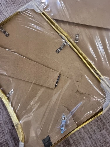 Очень хорошо упаковано, рамка получена правильного размера, хорошо защищена и золотой не дешевый