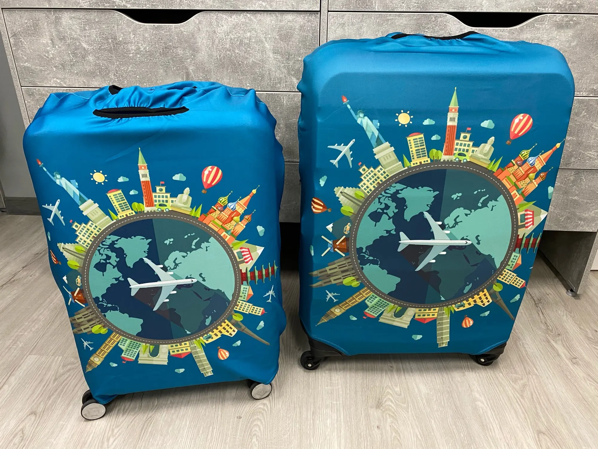 Чехол для чемодана HMUNII, эластичный, с изображением карты мира, для чемоданов размером 18''-32''