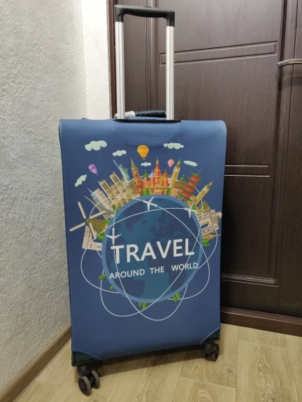 Рисунок на фото кажется тиснёным, но это простой принт на ткань. У меня оказался немного нестандартный чемодан и ручки не полностью совпадают с отверстиями. Ткань плотная и есть много застёжек: 2 сбоку, одна больная внизу. В целом, покупкой довольна. Товар не отслеживался, шёл до Беларуси 3 месяца, заказ для тех, кто не спешит.