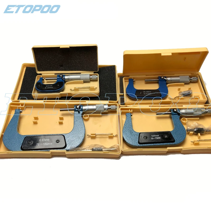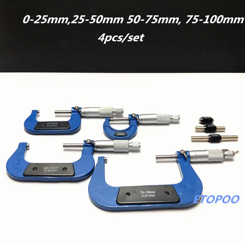 4 шт.компл. 0-100 мм снаружи Микрометры измерительный инструмент су...