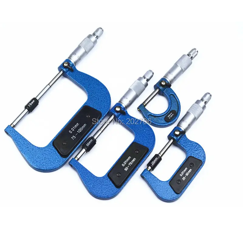 4 шт.компл. внешний спиральный микрометр 0-25 мм25-50 мм50-75 мм75-100 мм точность 0,01 мм верньерный Калибр штангенциркуль, измерительные инструменты