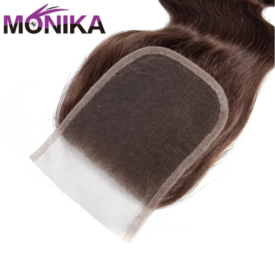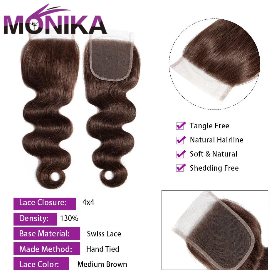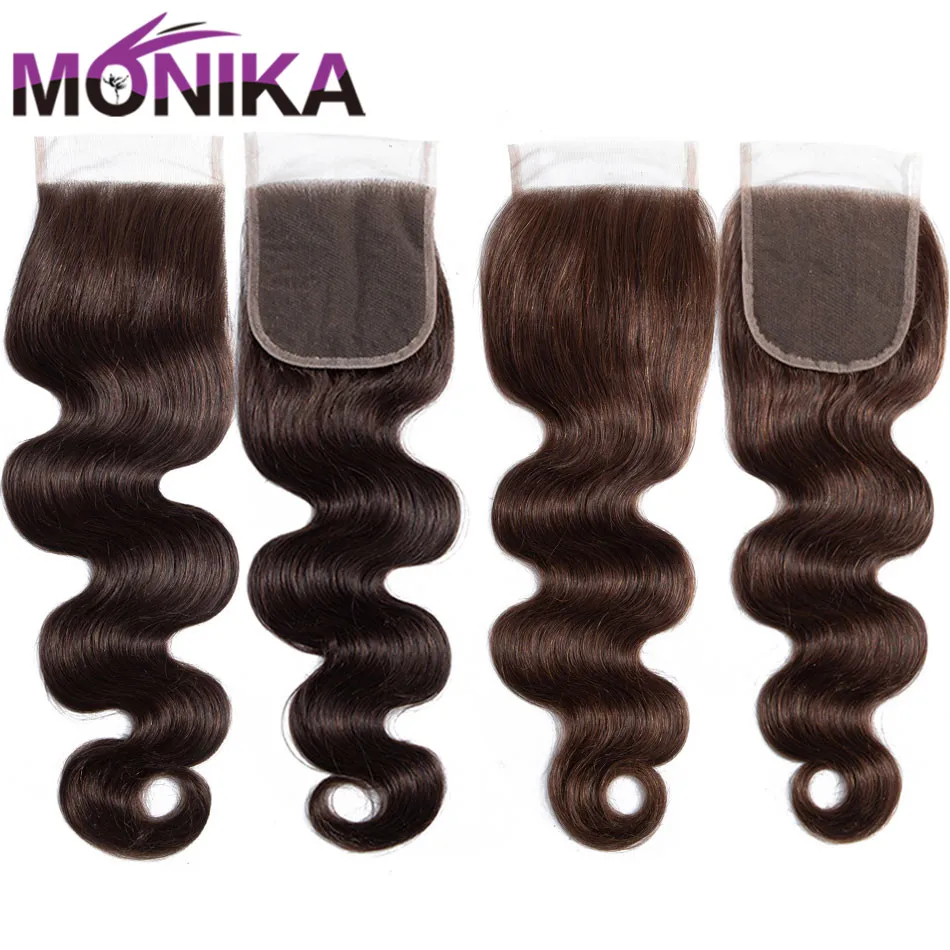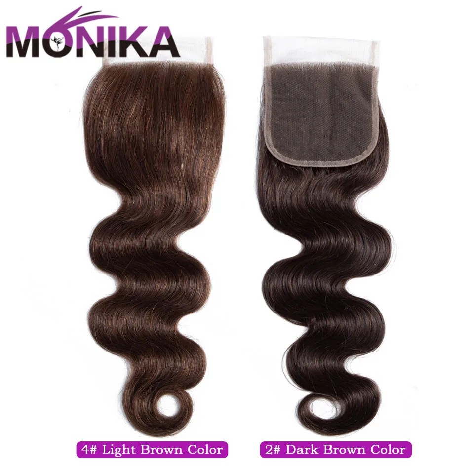 Зажимы для волос Monika 2 #4 #, Коричневые Бразильские волосы с застежкой на голову, 4x4 швейцарские застежки на кружевной сетке, человеческие волосы без повреждений