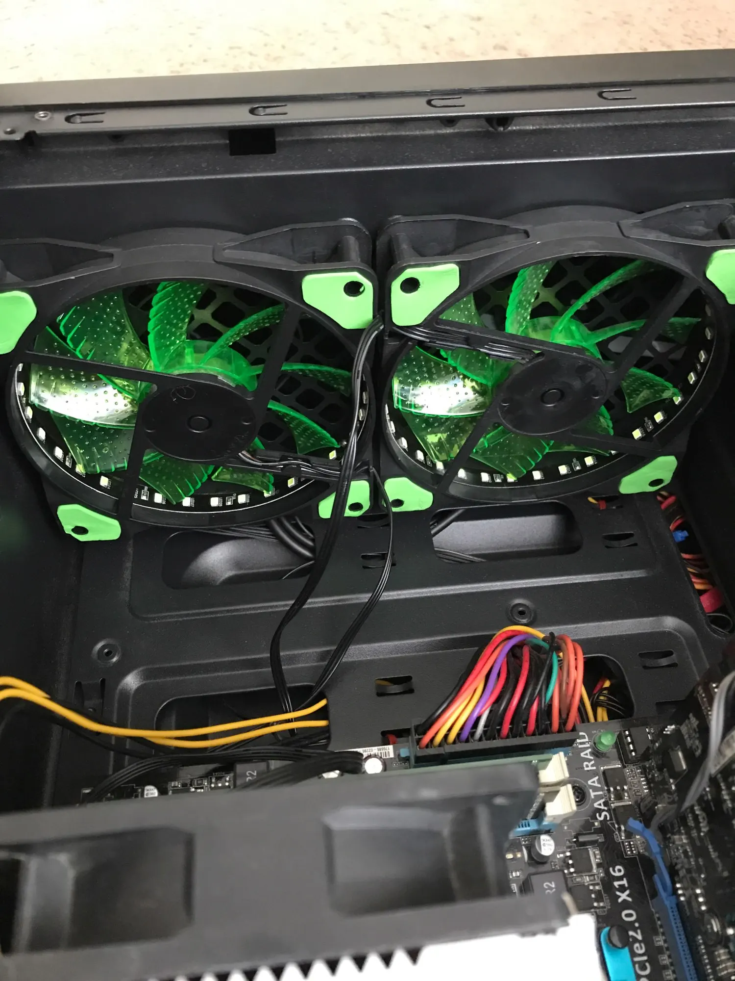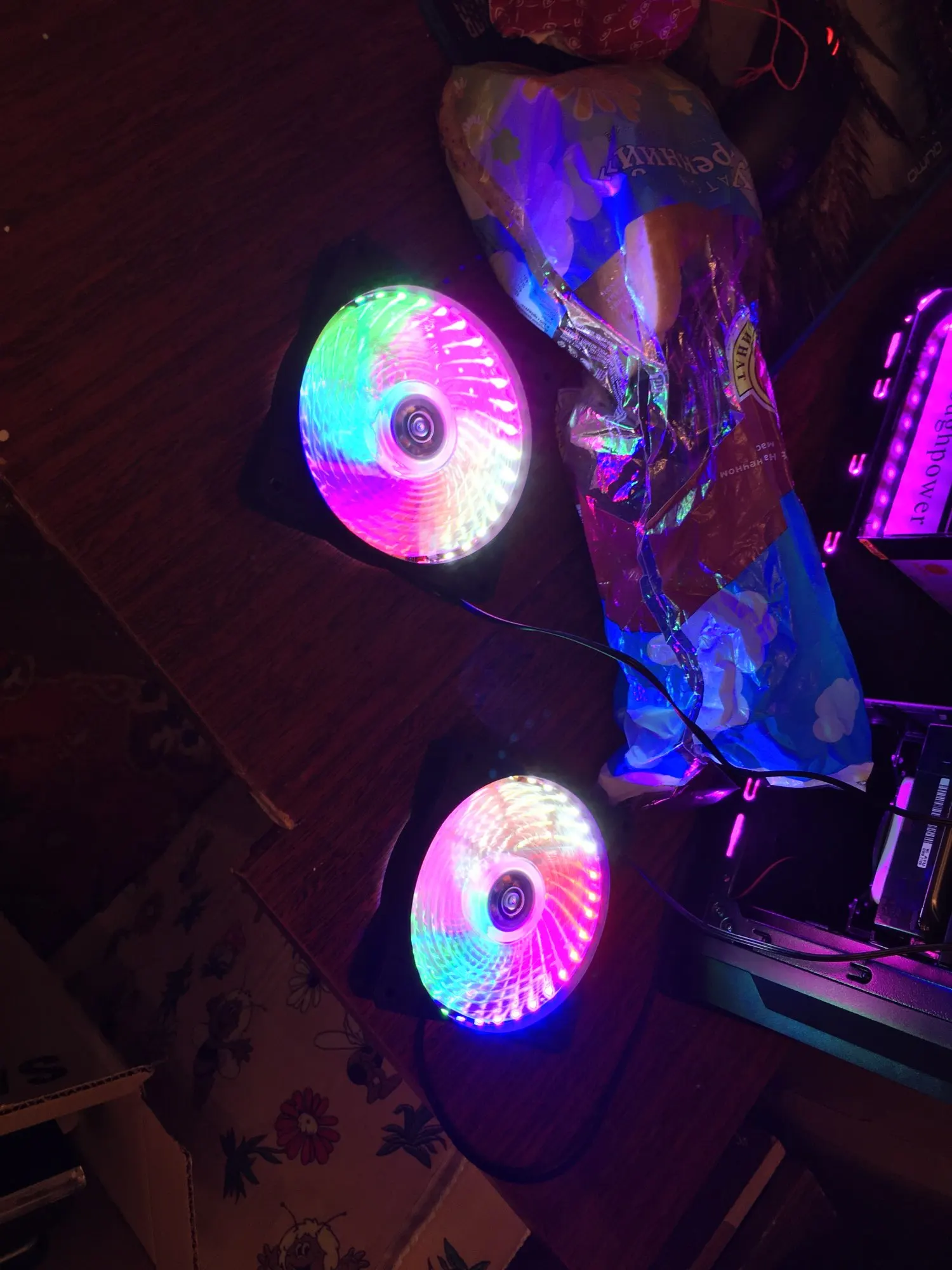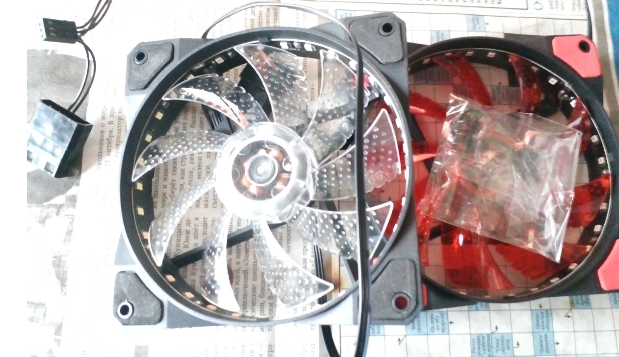 Очень крутые вентиляторы, красиво и ярко светятся. Заказ пришел за 2 недели, упакован на 5 с плюсом. Рекомендую!