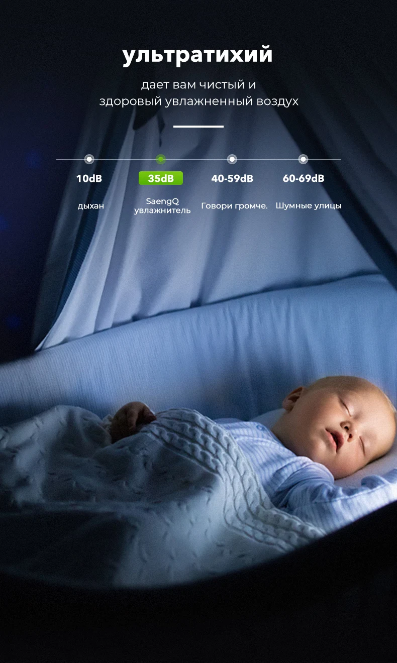 Увлажнитель воздуха saengQ Электрический ультразвуковой со светодиодсветильник и USB