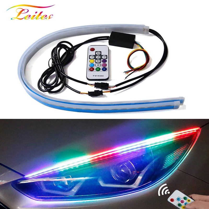1 комплект новый тонкий RGB течет последовательного гибкий светодиодный дневные ходовые огни для головной светильник полосы дневные ходовые огни светильник с пультом дистанционного управления Управление 30/45/60 см
