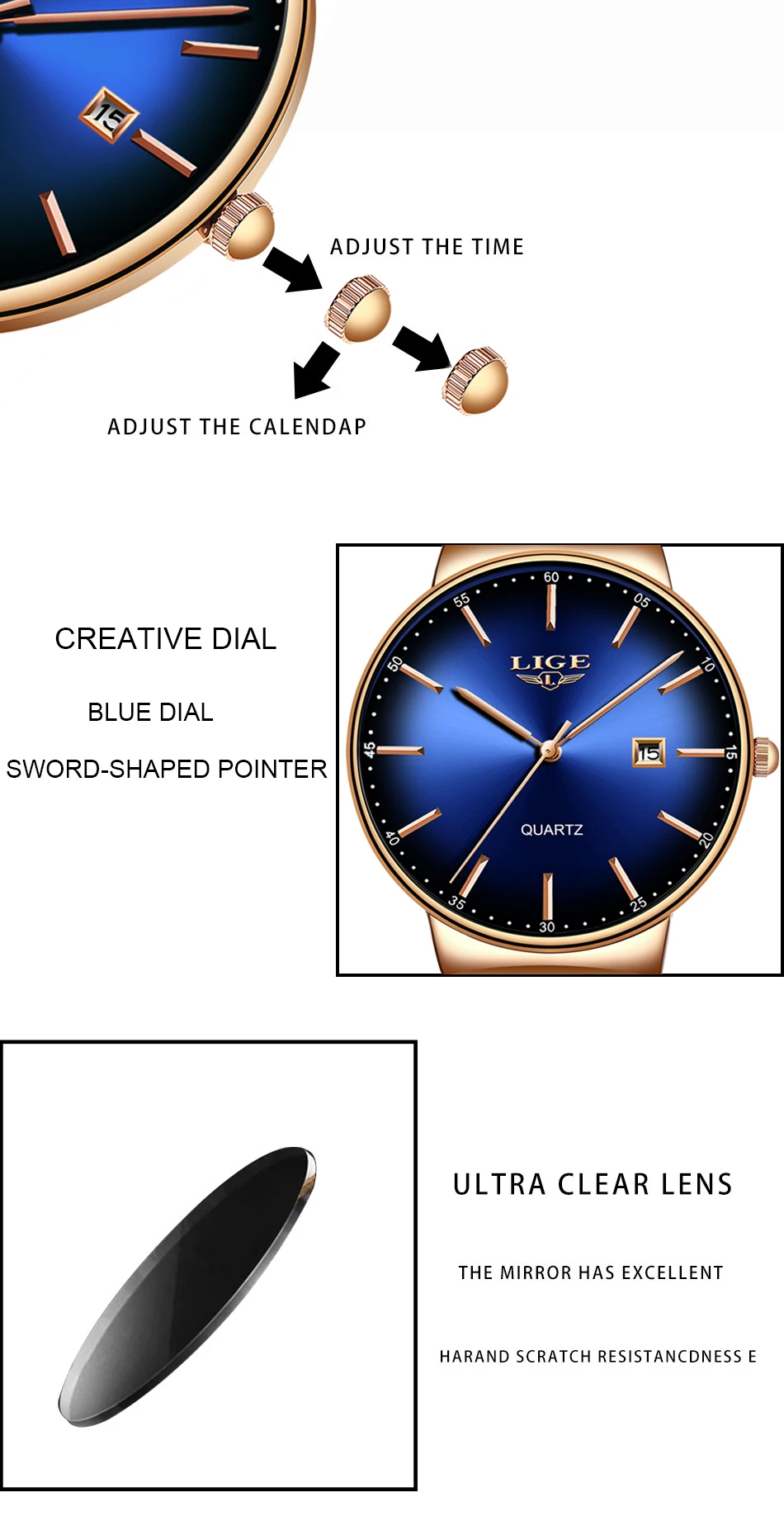 Часы наручные LIGE женские ультратонкие, брендовые Роскошные водоне...