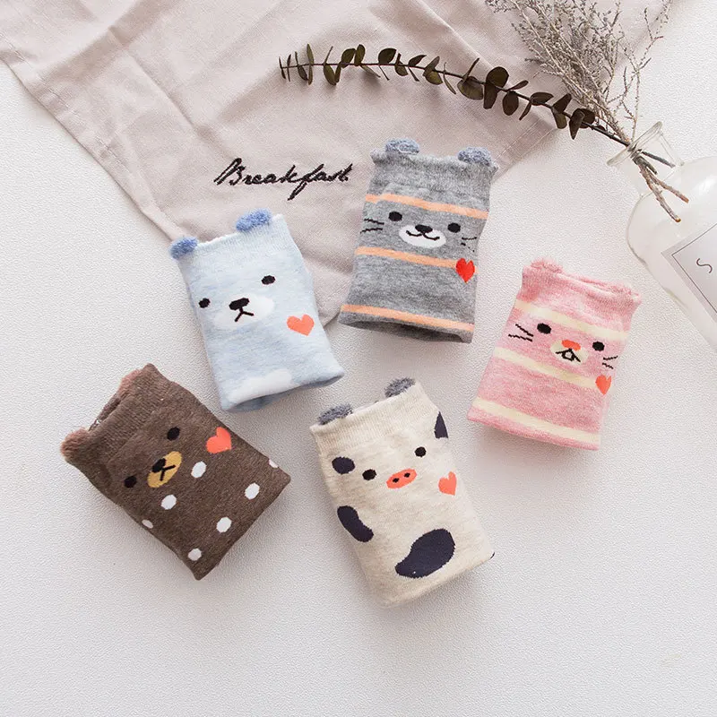 Носки женские, хлопковые, разноцветные, с мультяшным принтом, 5 парЛот
