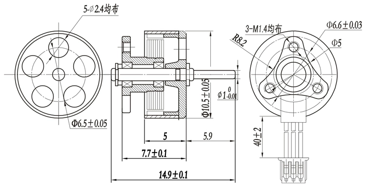 Размеры мотора (диаметр * лен): phi10.5мм * 14,9 мм