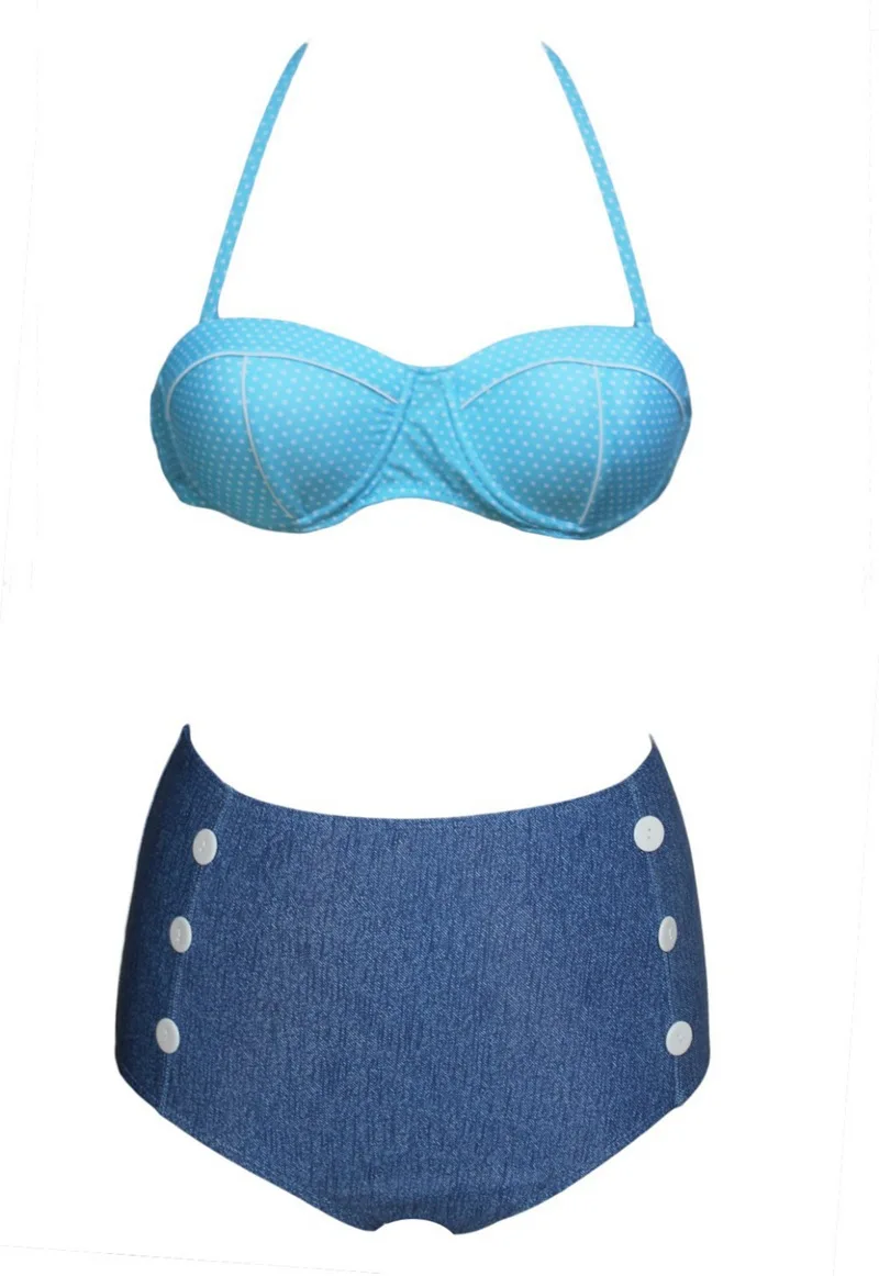 Прямая доставка, 2019 г., милый ретро купальник, винтажный комплект бикини с высокой талией, SMLXL, для женщин, купальный костюм