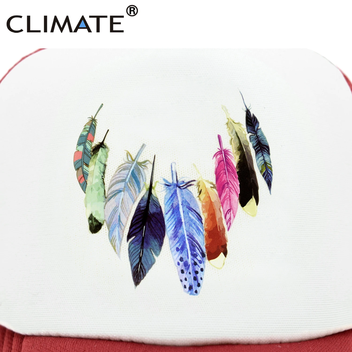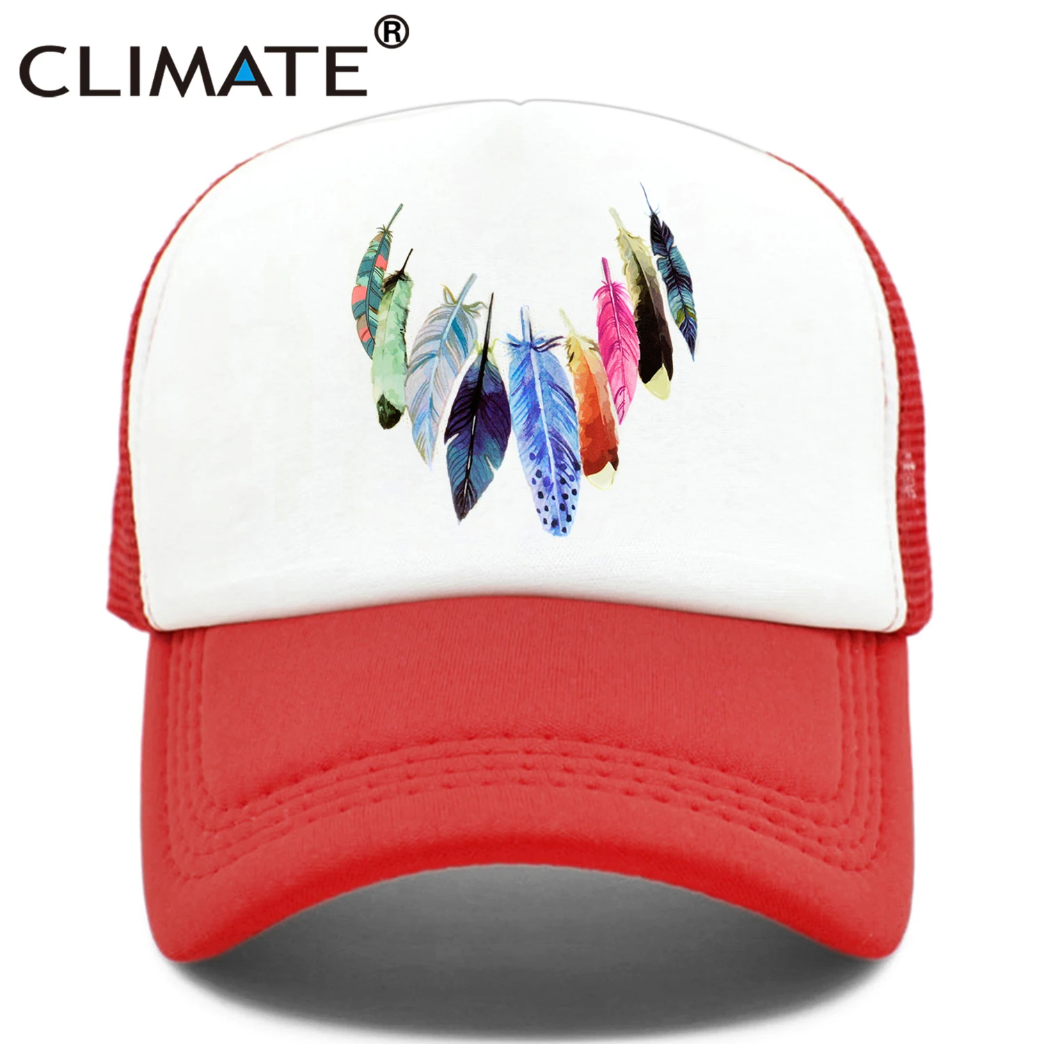 Кепка-тракер CLIMATE с индейскими перьями для мужчин и женщин, Кепка с цветными элементами Ловца снов, бейсболка в стиле хип-хоп с сеточкой для мужчин и женщин