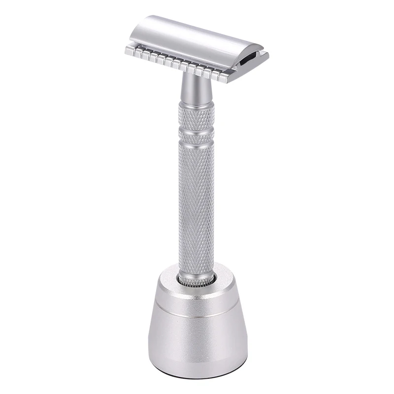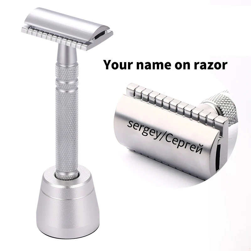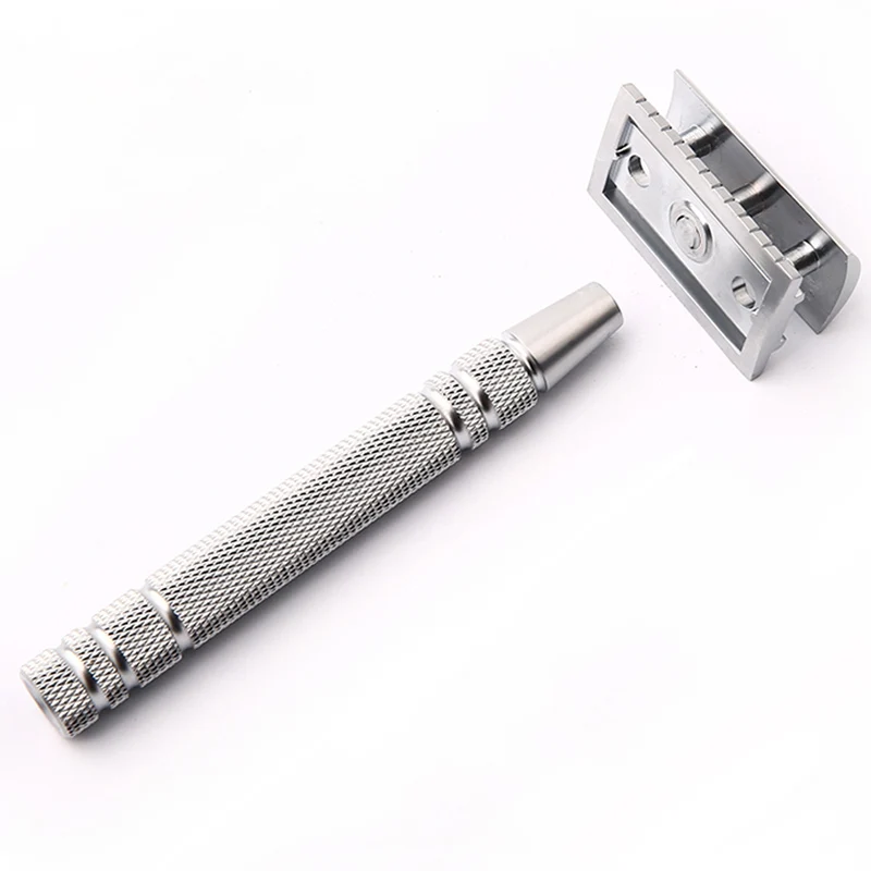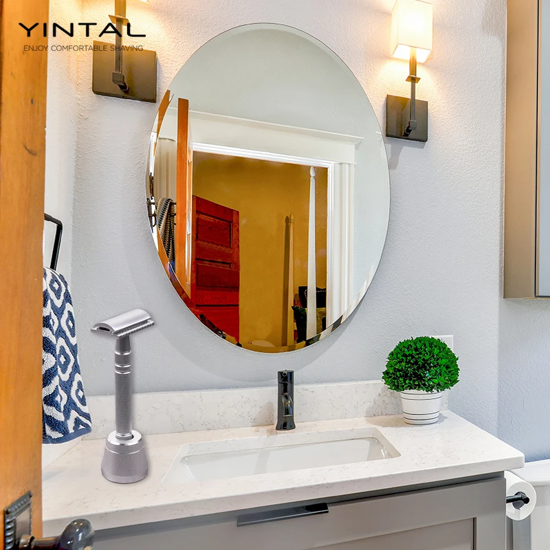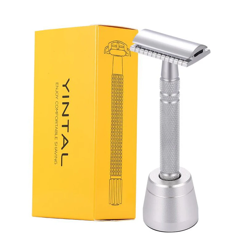 Классическая двусторонняя ручная бритва YINTAL для мужчин, Матовая Серебристая бритва с длинной латунной ручкой, безопасные бритвы, набор водостойких бритв без ржавчины