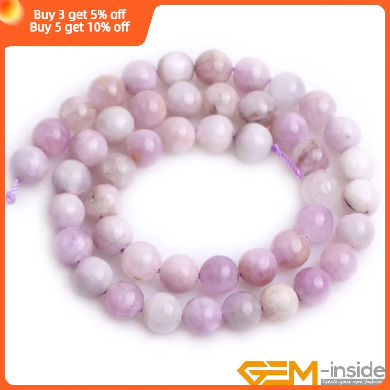 Натуральный камень, фиолетовый Spodumeneкунцит, фиолетовый камень, круглые бусины для изготовления ювелирных изделий, нитка 15 дюймов, браслет, ожерелье, россыпью