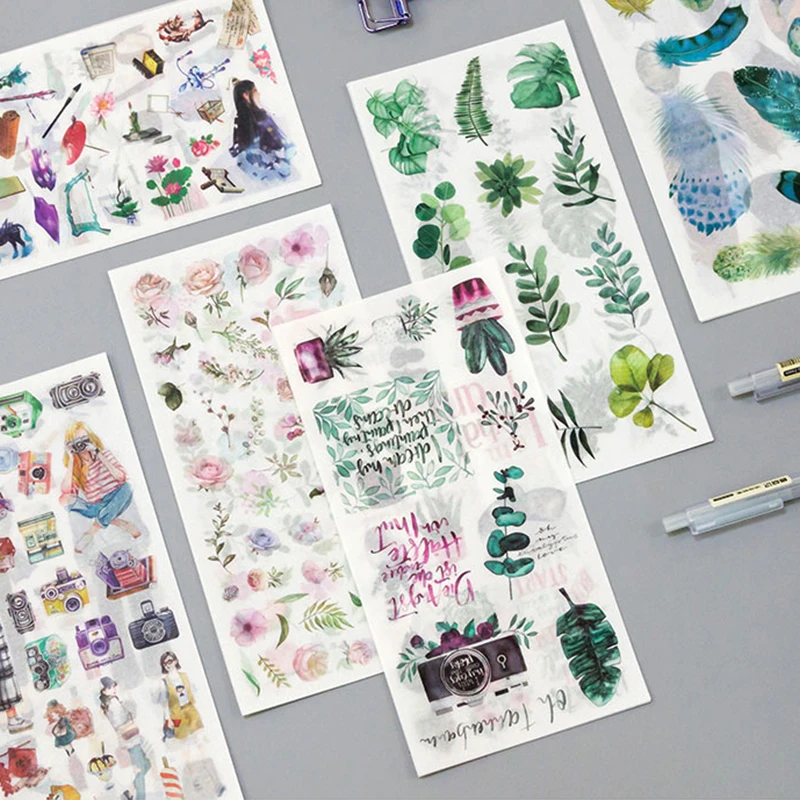 3 листа винтажные растения перо дорожный штамп клейкая бумага накле...