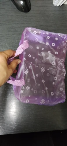 Удобная косметичка, вместительная. Не разглядела сначала. В нижней части боковин сквозная сетка. Из-за этого не герметичная.